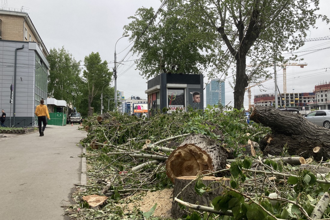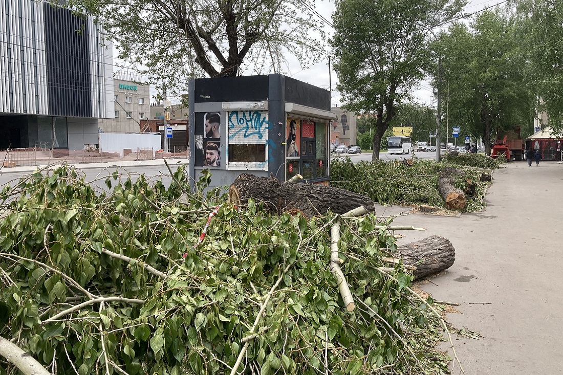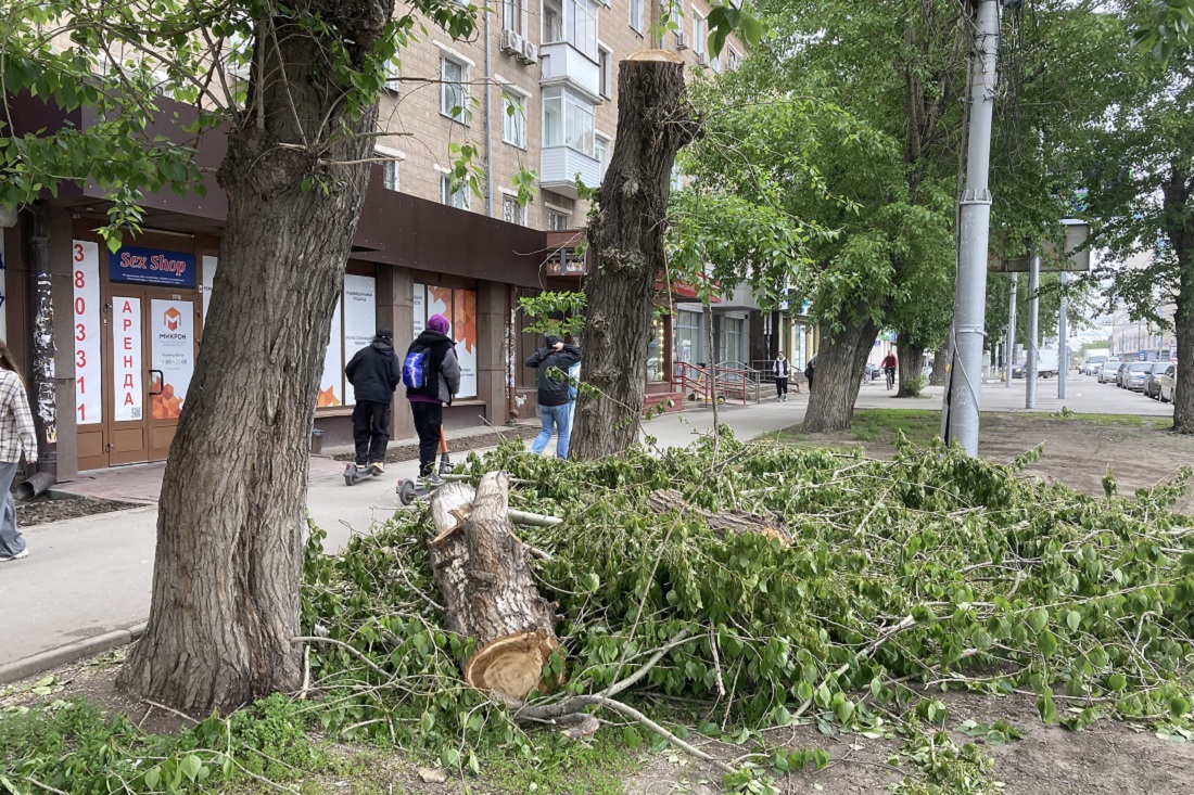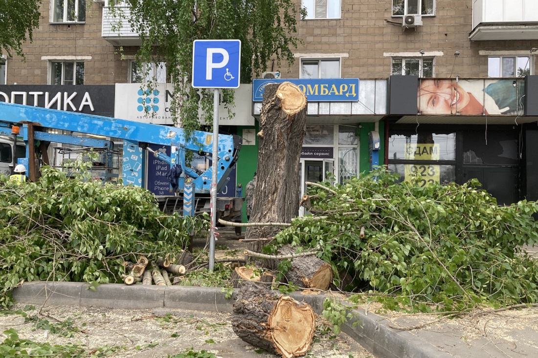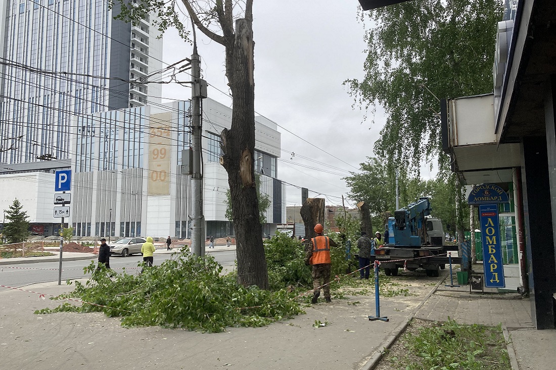 На улице Ватутина спиливают аварийные тополя. Старые деревья убирают на участке от Новогодней до Блюхера. Вместо них высадят крупномерные саженцы черёмухи.