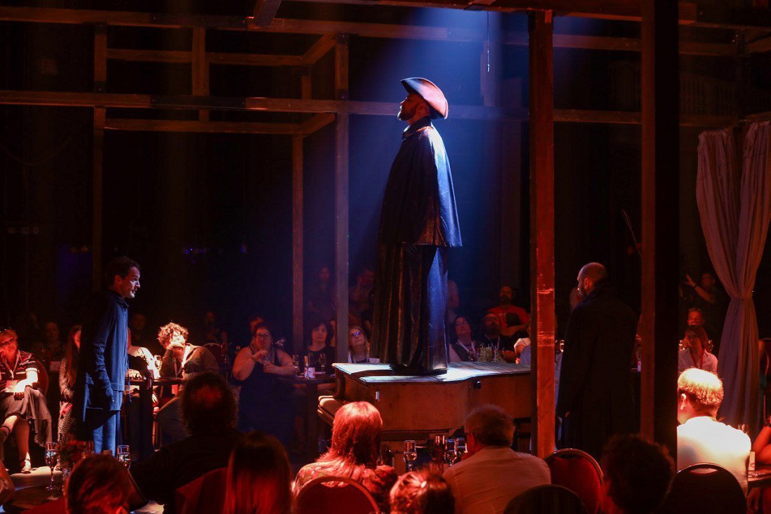 Летний театральный фестиваль в Новосибирске продолжили «Маленькие трагедии». Яркую постановку по знаменитому циклу Пушкина на форум привёз Красноярский драматический театр. Спектакль сыграли на камерной сцене «Красного факела».