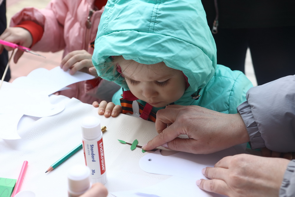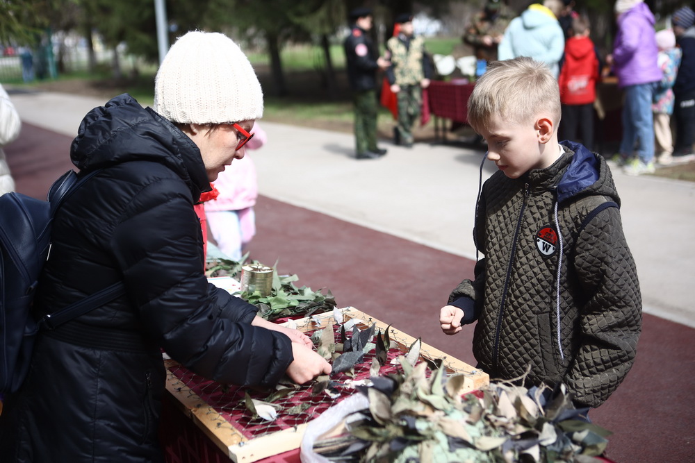 Для гостей развернули зоны мастер-классов, где можно было потренироваться в сборке и разборке оружия, научиться плести маскировочные сети, нашлемники, изготовить георгиевскую ленточку, голубя мира и куклу-берегиню, а также поучаствовать в акциях «Письмо солдату» и «Хлеб блокады».