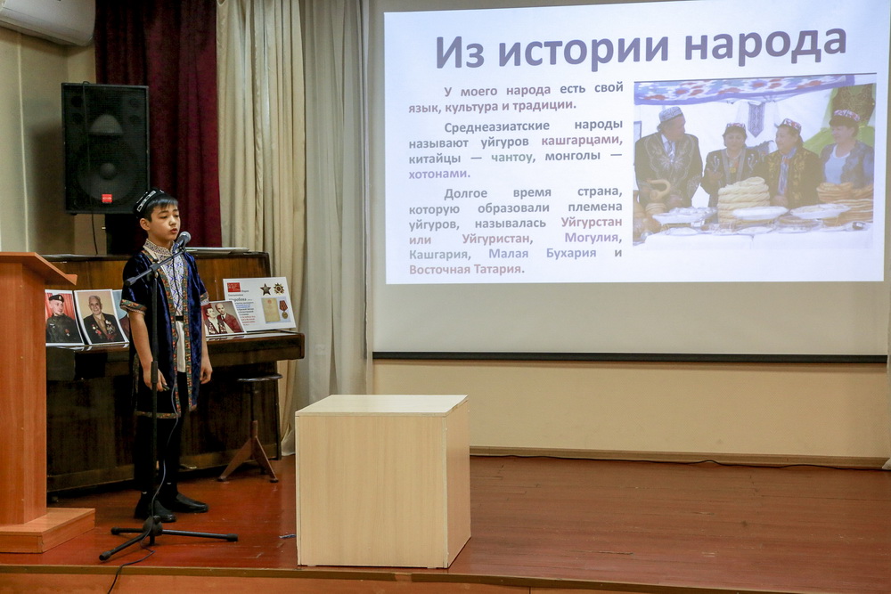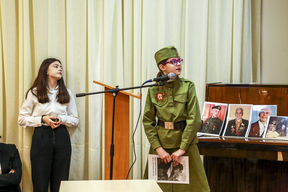 К этой тематике в своих выступлениях обращались почти все участники. Некоторые упоминали родственников косвенно, уделяя внимание истории и культуре. По такому принципу своё выступление построила четвероклассница Риана Гаязова. Она подготовила работу о песнях времён Великой Отечественной войны.