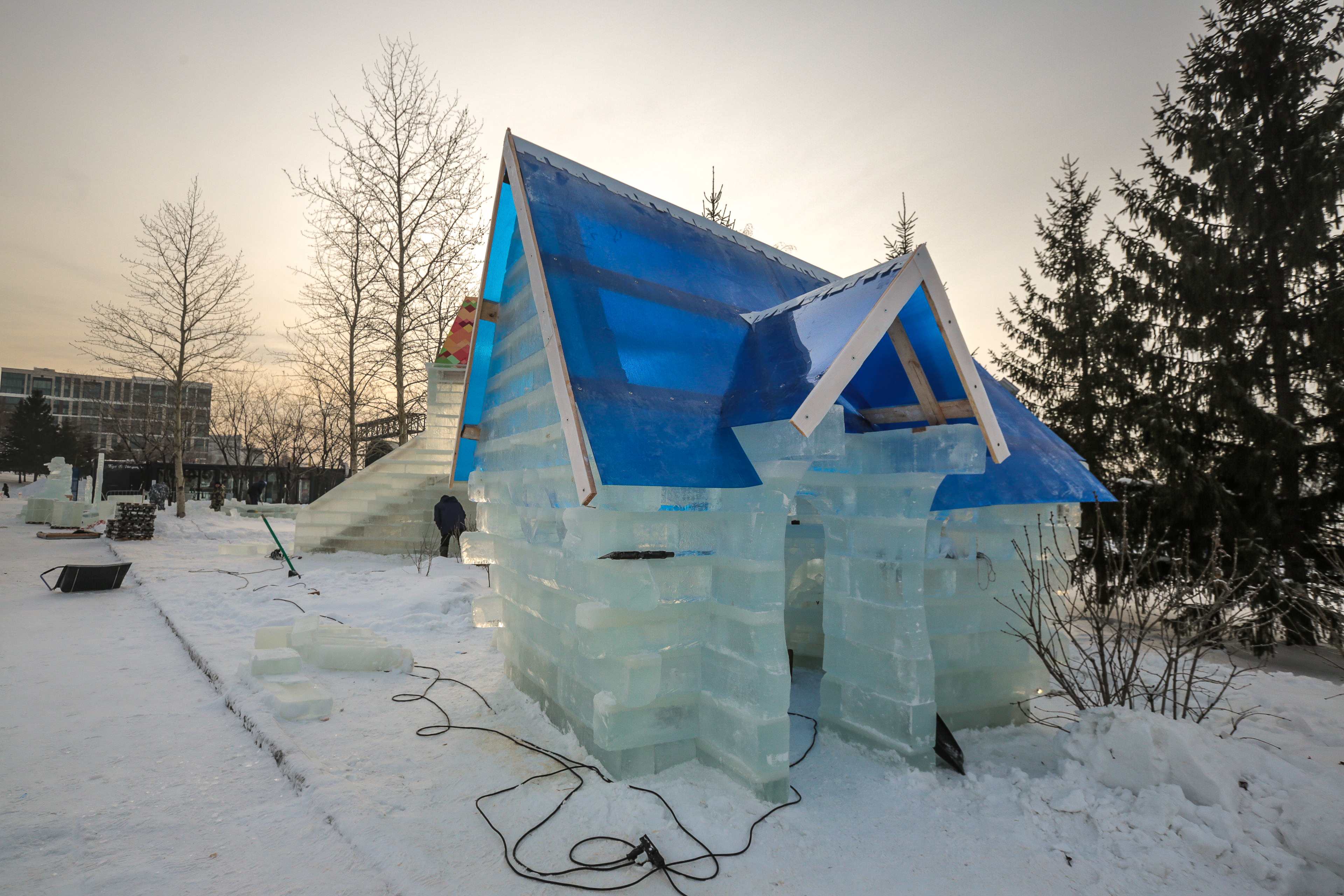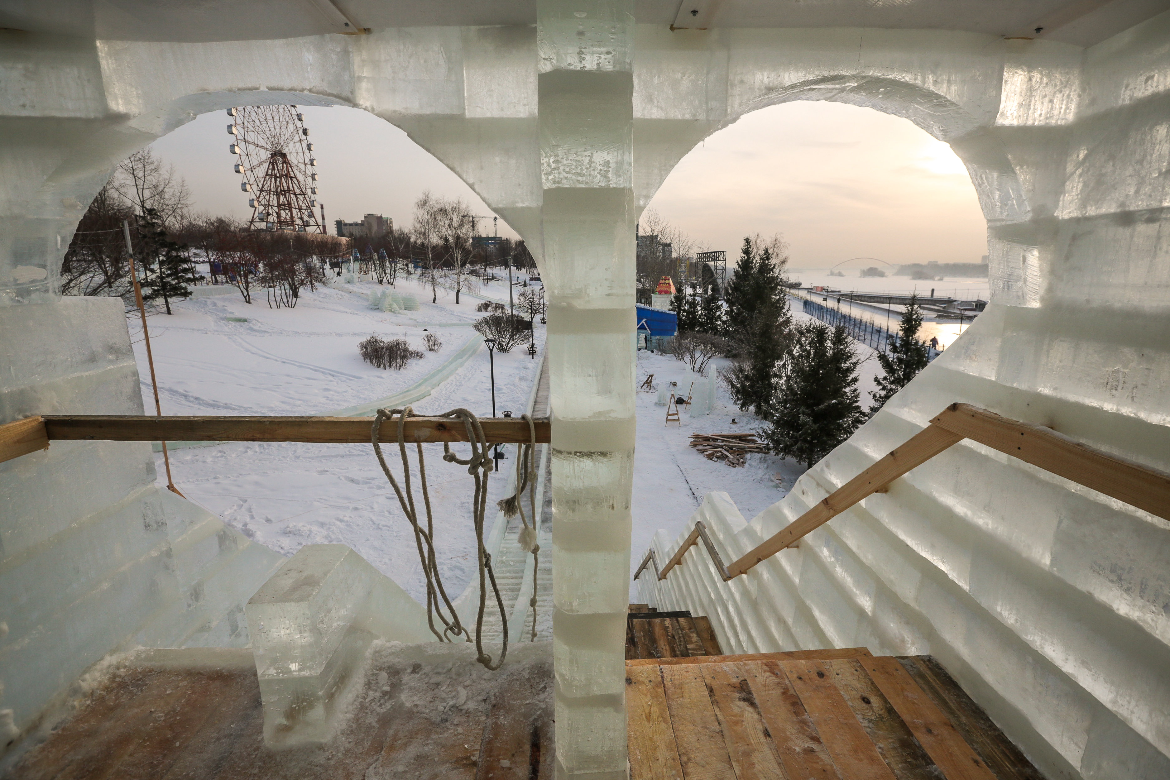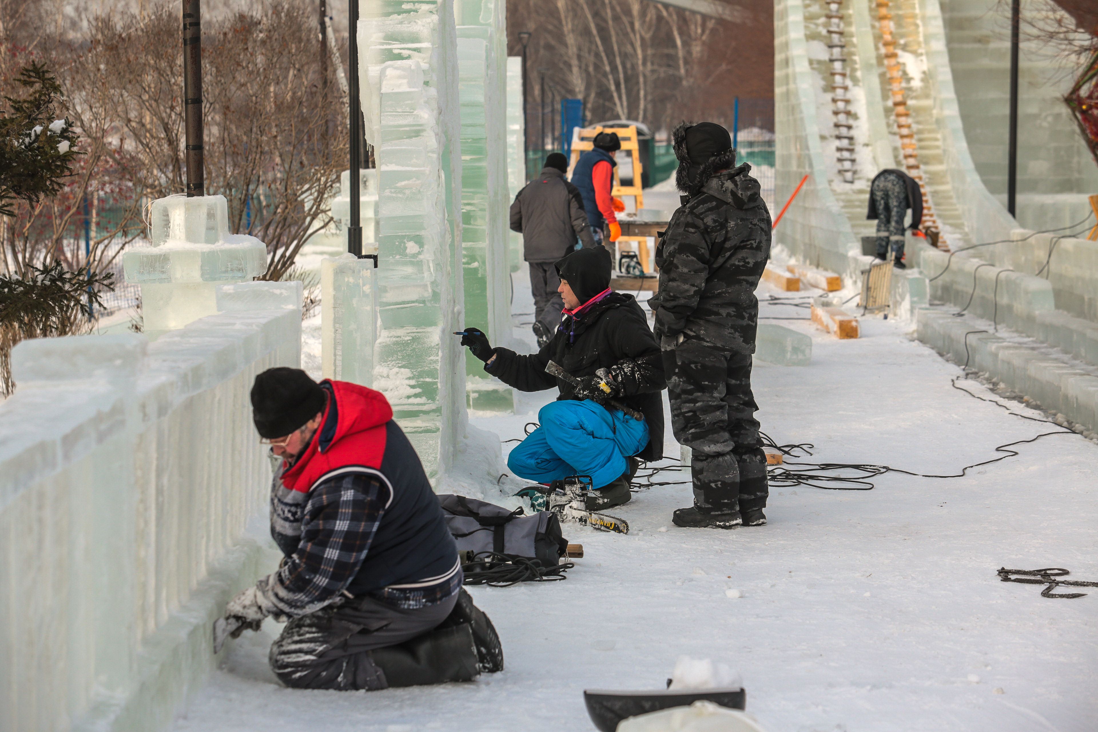 Ледовый городок с яркими фотозонами строят на Михайловской набережной