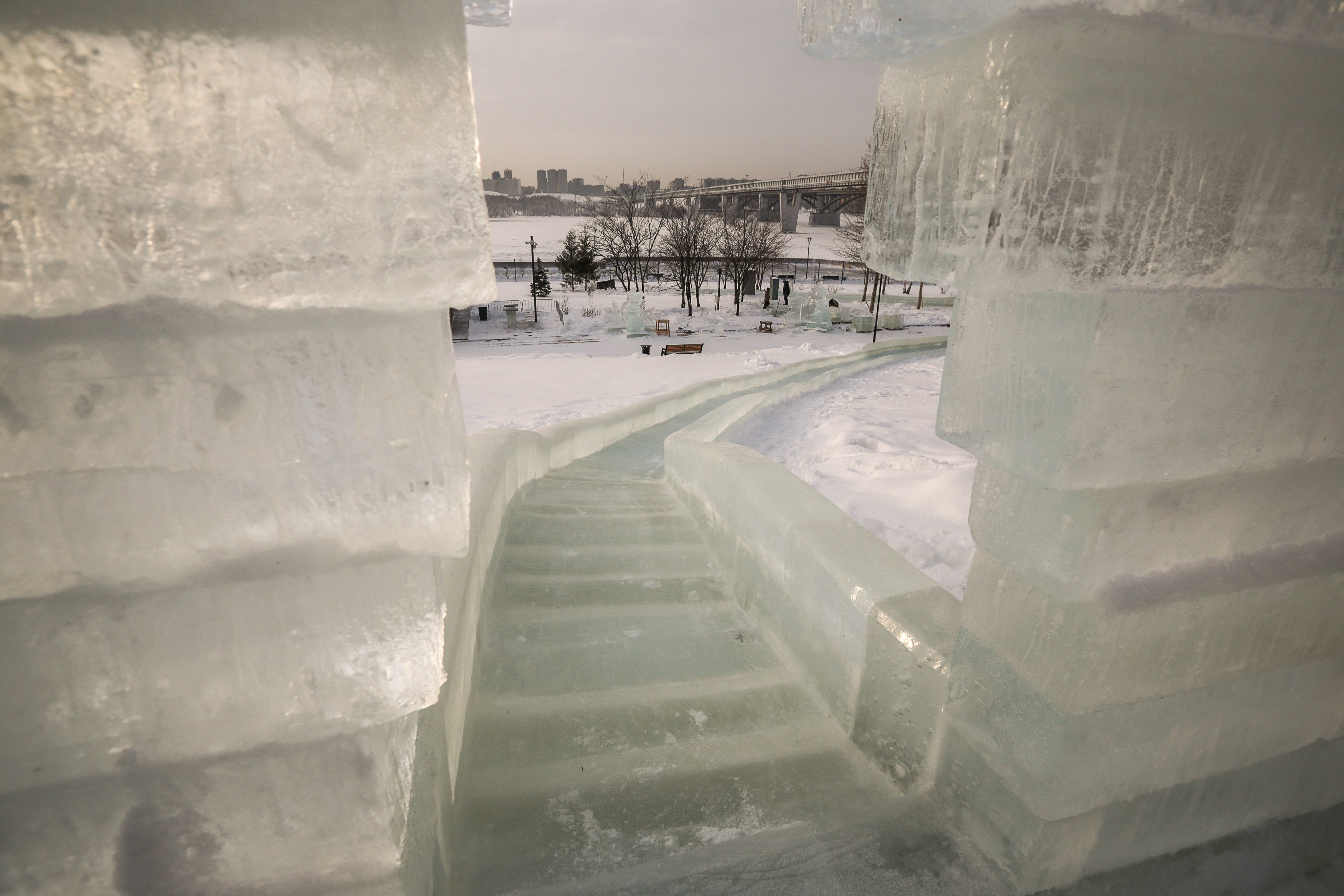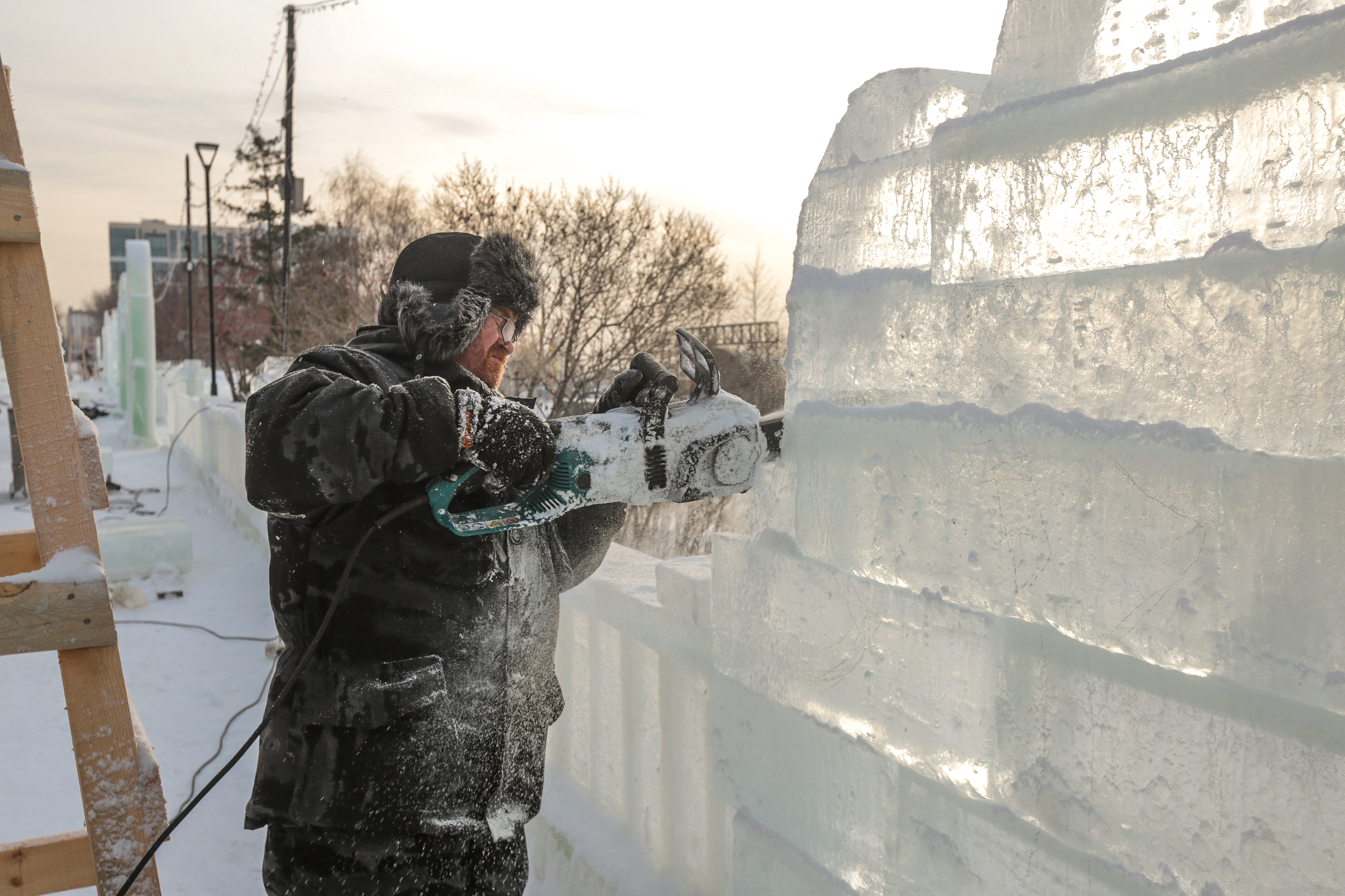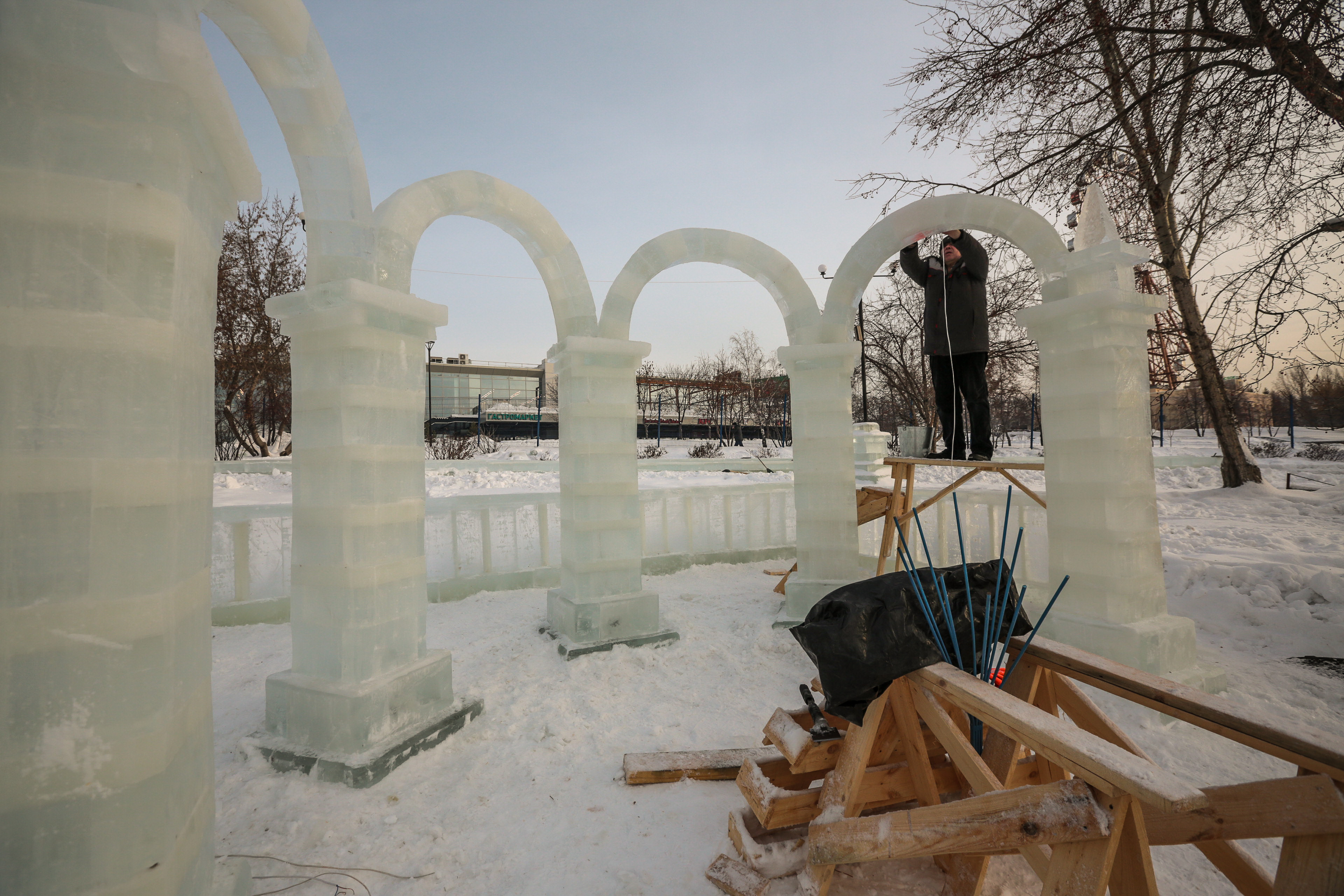 Ледовый городок с яркими фотозонами строят на Михайловской набережной