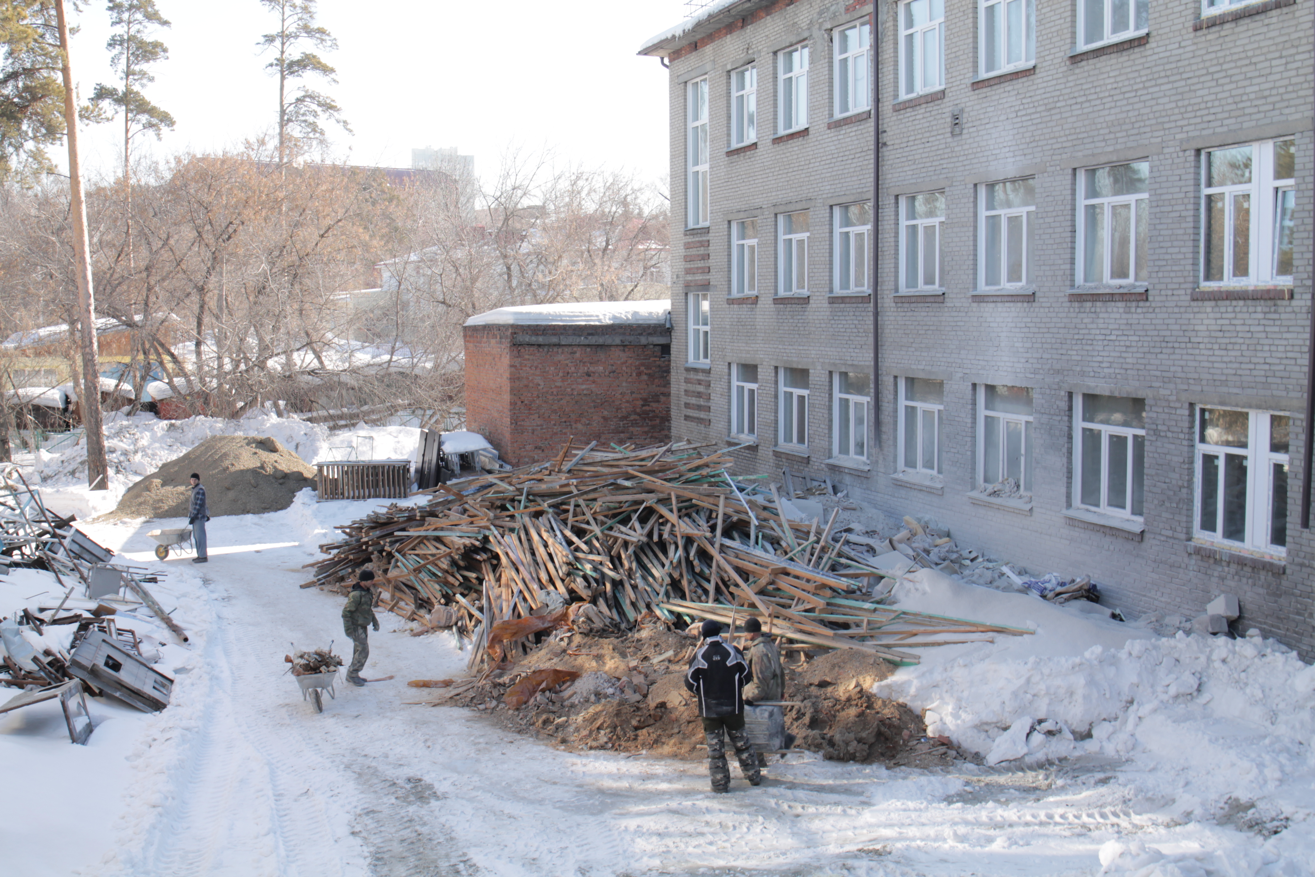 Ремонт в здании лицея №159 в Заельцовском районе планируют завершить к середине лета. Работы начали в прошлом году и продолжали даже зимой.