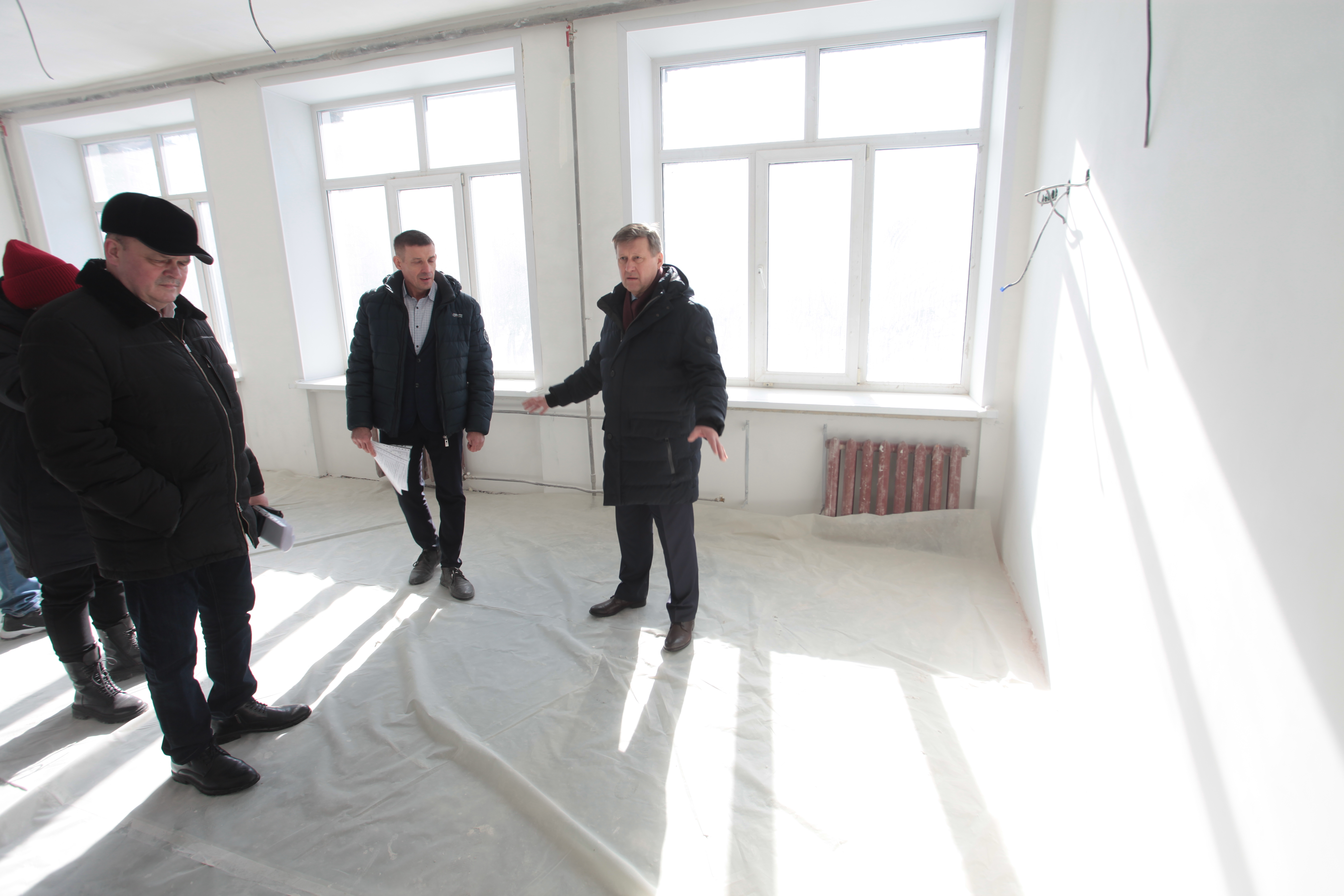 «Особенность заключается в том, что работы в зимний период не прекращались, они велись. То есть здесь было отопление, нормальная температура, созданы условия. По плану здесь реконструкция фасада, но это можно сделать и в следующий период. Самое главное — подготовить здание к занятиям. По докладам, в срок мы успеваем», — отметил мэр Новосибирска Анатолий Локоть.