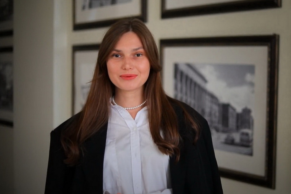 Ещё одна полуфиналистка — Елена Михнюк (24 года). Она недавно окончила Сибирский государственный университет геосистем и технологий и решила остаться тут работать. Её должность — помощник ректора. Девушка рассказала, что в свободное от работы время занимается вокалом и ораторским мастерством, а ещё увлекается тюнингом одежды.