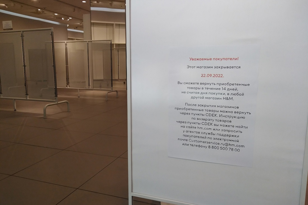 В опустевшем магазине всё ещё много посетителей, привлечённых 50%-ными скидками на оставшиеся товары. Сейчас можно за полцены купить шапки, береты, платья, брюки, шорты и бельё. Правда, выбор размеров и расцветок весьма ограничен. В объявлении о закрытии говорится, что покупатели смогут вернуть приобретённые товары в течение 14 дней, не считая дня покупки, в любой другой магазин H&M или через пункты копании CDEK.