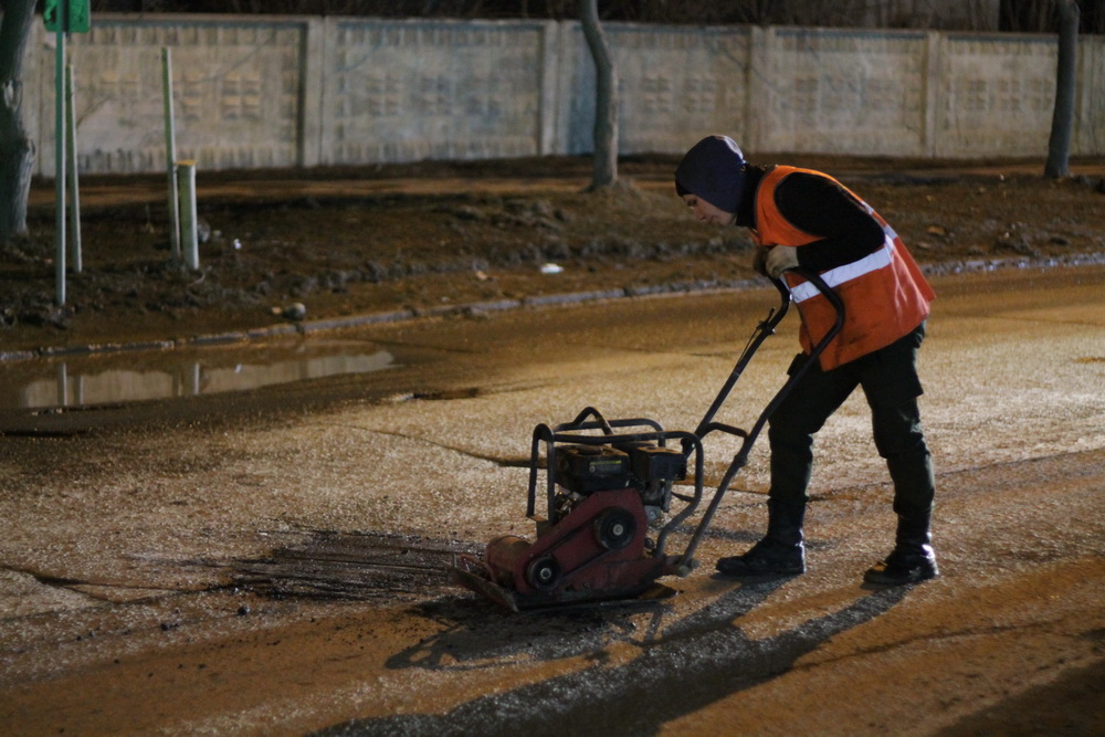«Очень много выбоин, давно не было капитального ремонта. Трикотажная — одна из самых критичных улиц Дзержинского района. Закатываем ямы. Поддерживаем проезжую часть в нормальном, удовлетворительном состоянии. Около 100 квадратов в среднем получается сейчас выполнить за ночь», — отметил начальник участка муниципального учреждения «Дзержинка» Сергей Никулин.