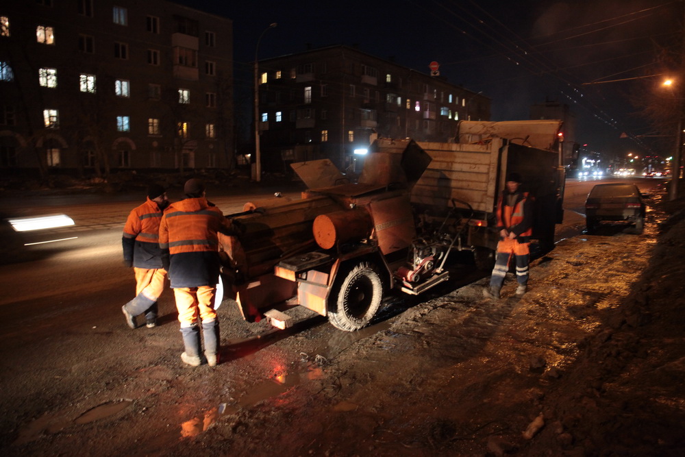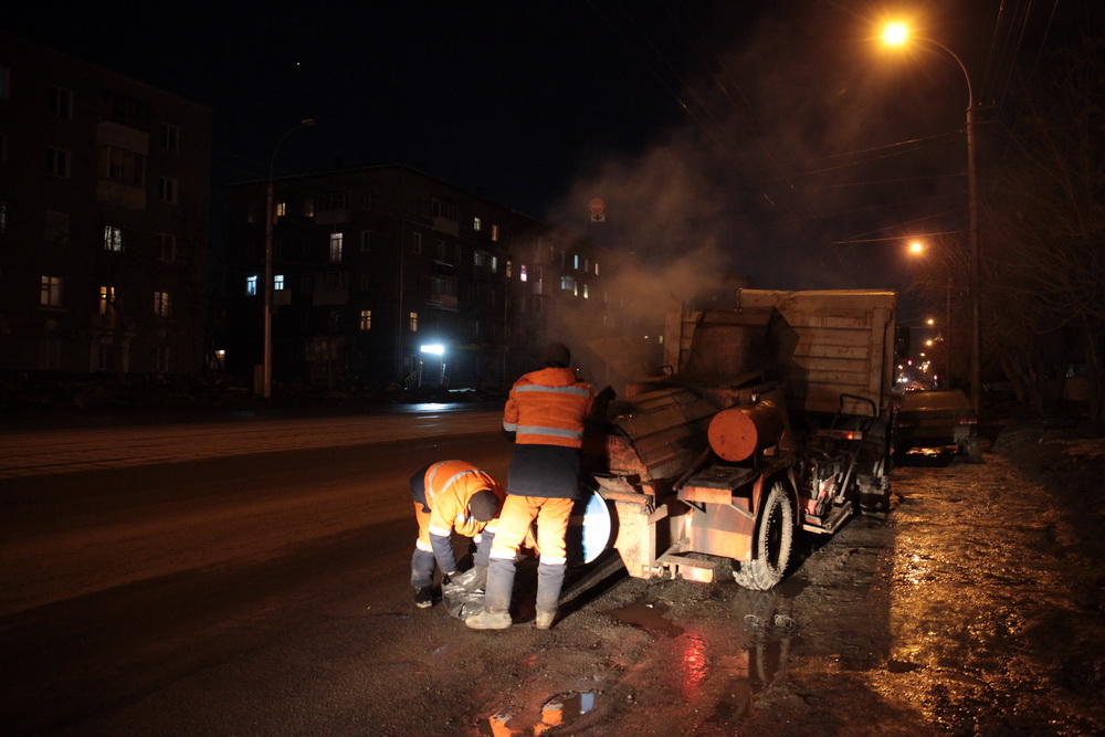 Часть работ выполняют ночью, чтобы не мешать движению автомобилей.
