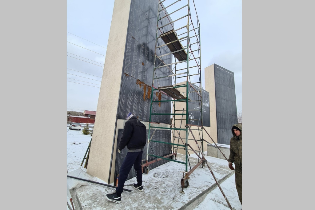 Мемориал воинам начали реставрировать в сквере «Белый сад» на Первомайке