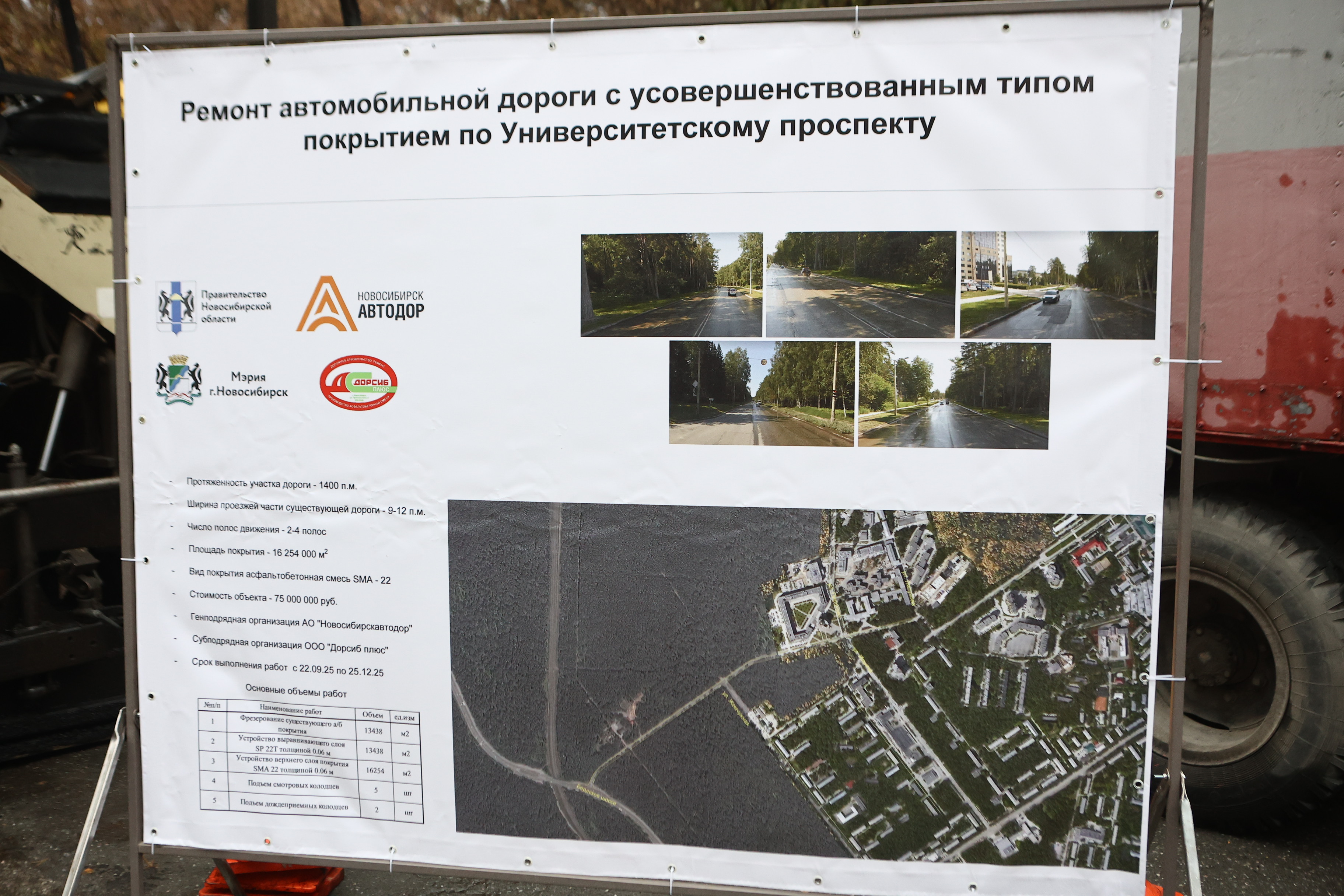 Дорогу обновляют на всей её протяжённости — от Бердского шоссе до проспекта Академика Коптюга. Это почти полтора километра. Подрядчик выполнил фрезерование и уложил выравнивающий слой. В работе применяют асфальтобетонную смесь СМА-22 со щебнем более крупной фракции по сравнению с традиционным составом — такие материалы более устойчивы к образованию колеи. Далее бригады приступят к укладке верхнего слоя, обустроят примыкания, поднимут колодцы до уровня проезжей части.