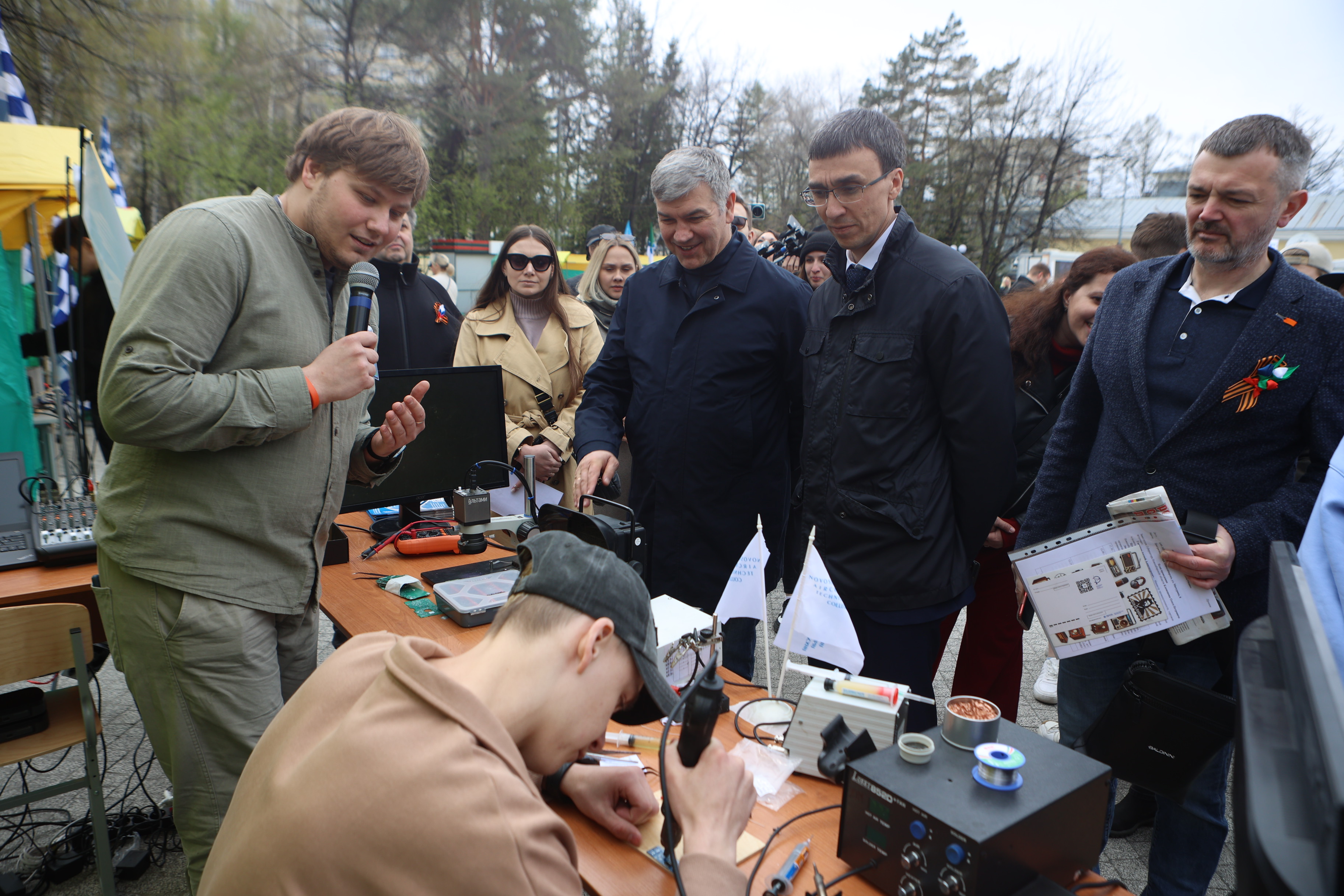 На праздник, приуроченный к 130-летию изобретения радио Александром Поповым, собрались десятки горожан. Они увидели, как студенты паяют микросхемы. На площадке подвели итоги конкурса «Лучший по профессии — монтажник радиоэлектронной аппаратуры и приборов». Подробнее об этом состязании — читайте в материале «Новосибирских новостей».