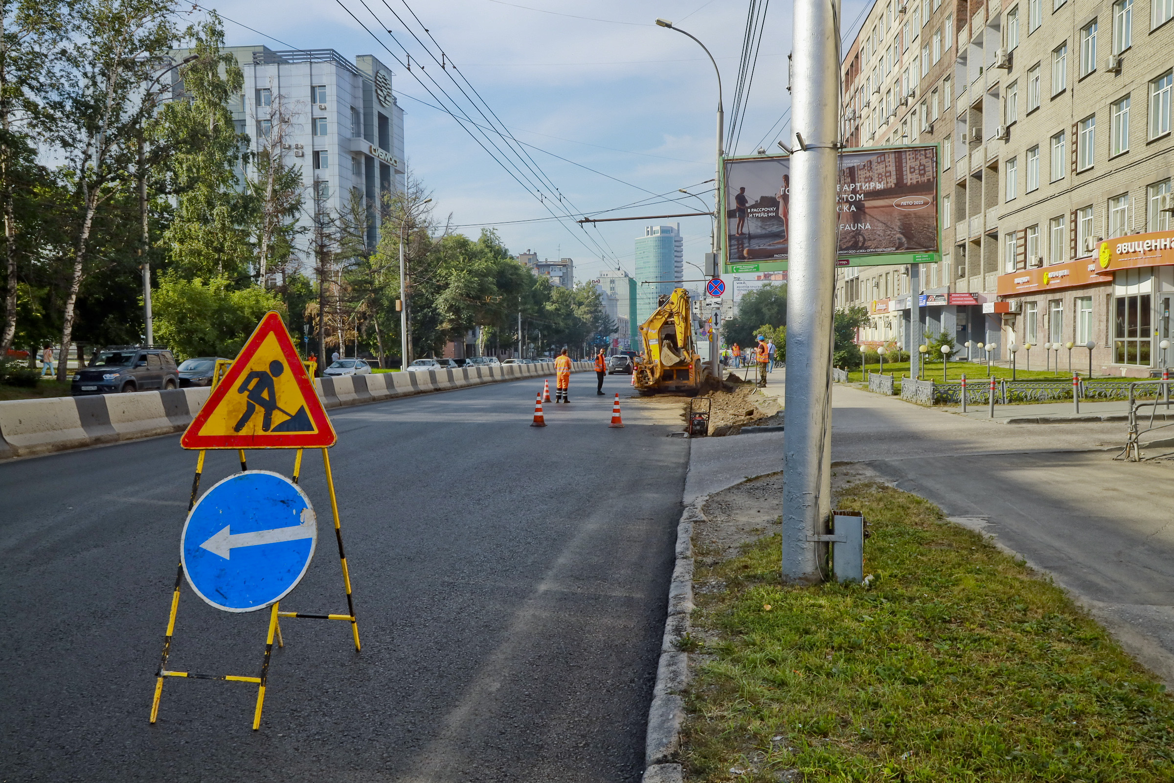 370-метровый участок проспекта Димитрова комплексно ремонтируют: убирают колею и приводят в порядок повреждённые газоны. На объекте в пятницу, 1 августа, побывал мэр Новосибирска Максим Кудрявцев.