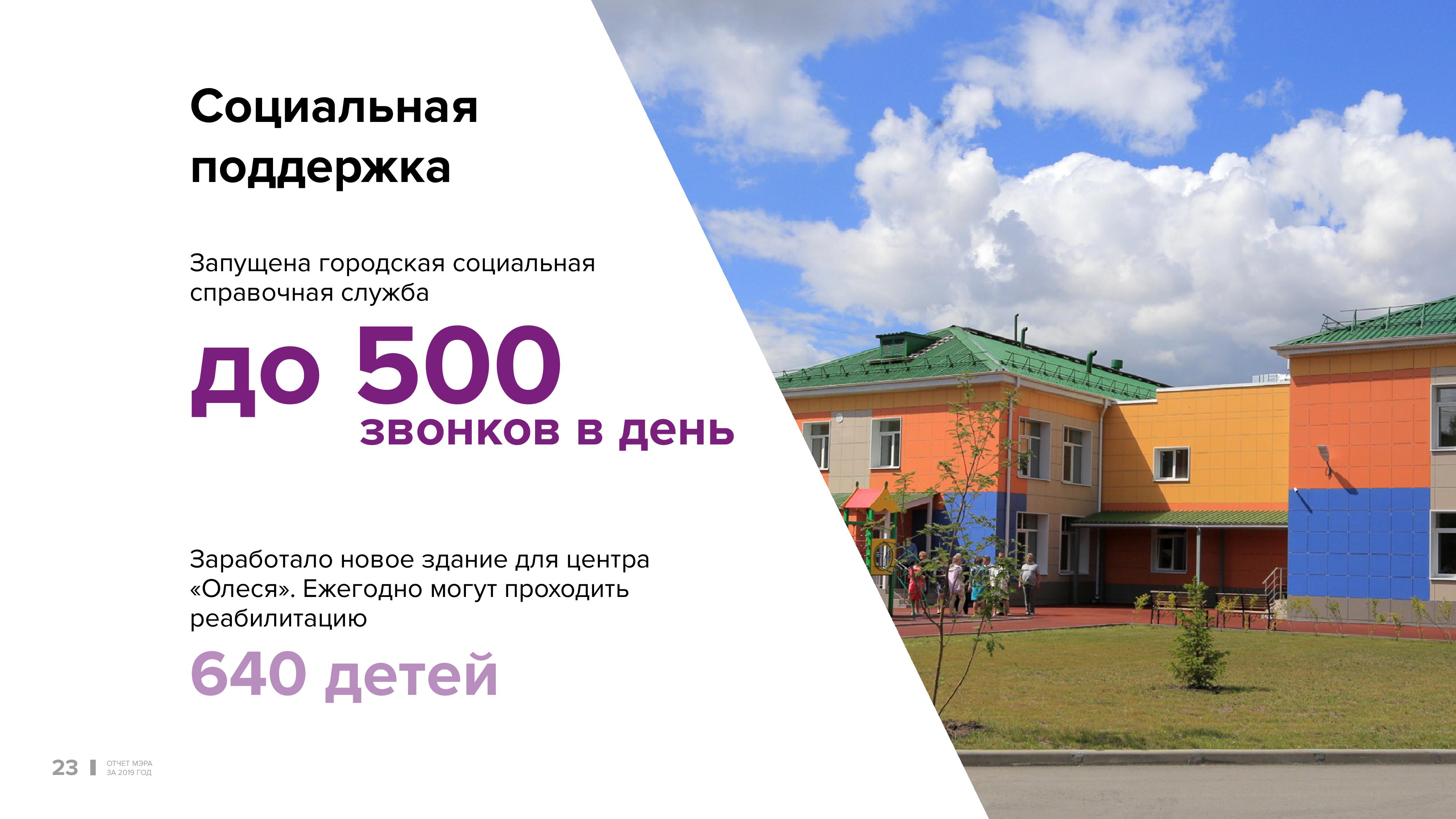 Реализация социальных программ остаётся в числе приоритетов. В центре внимания — поддержка людей, находящихся в трудной жизненной ситуации. В городе по-прежнему сокращается количество сирот за счёт активности новосибирцев, которые принимают в свои семьи этих детей, тем самым помогая решать эту проблему.