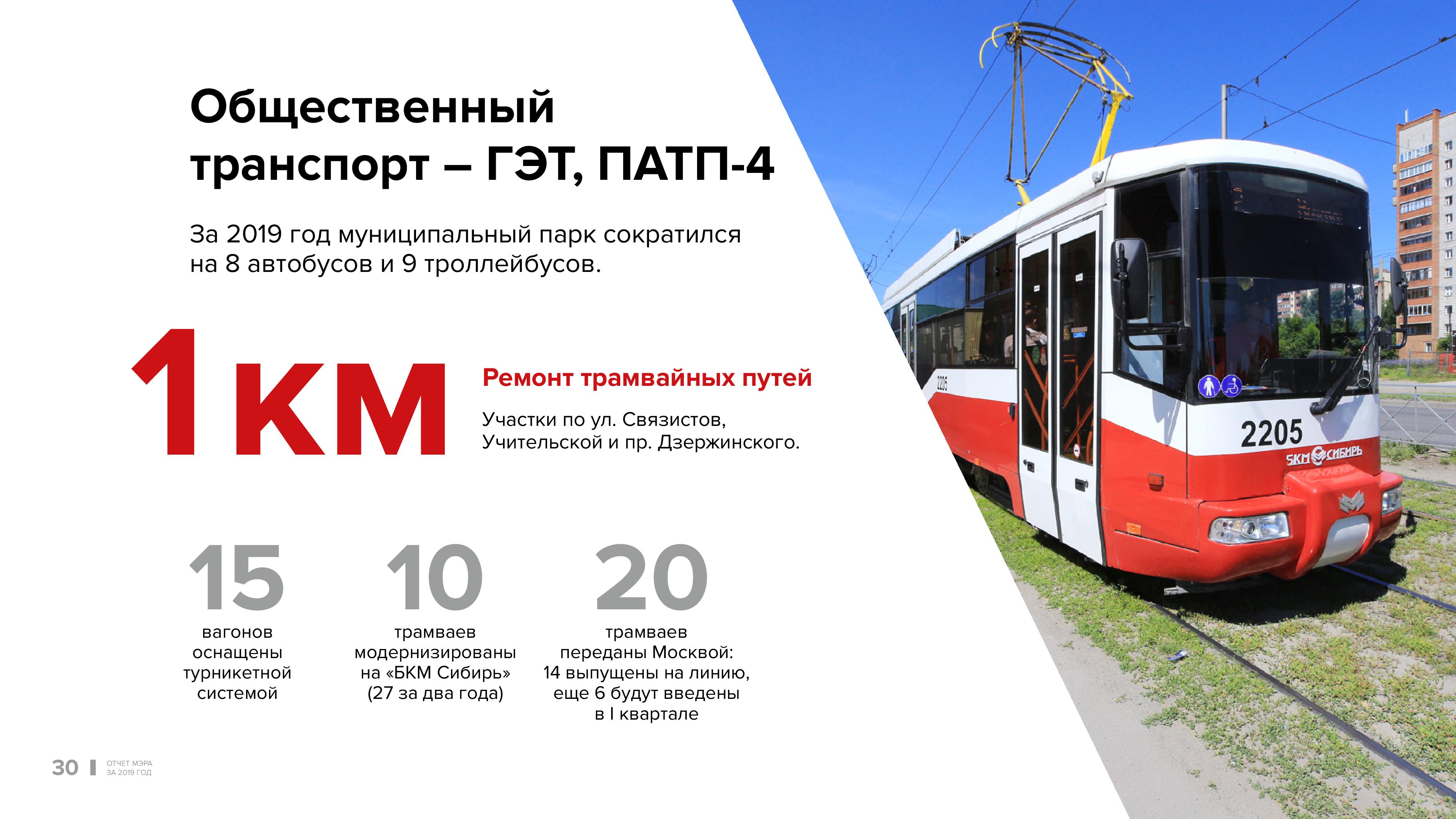 Благодаря работе «БКМ Сибирь» за два года депо «Горэлектротранспорта» (ГЭТ) пополнили 27 трамваев. В прошлом году город практически безвозмездно получил 20 трамваев из Москвы. Мы подвергаем их капитальному ремонту. Они в хорошем техническом состоянии. Они позволяют нам существенно решить проблему подвижного состава. В этом отношении мы продвинулись вперёд.