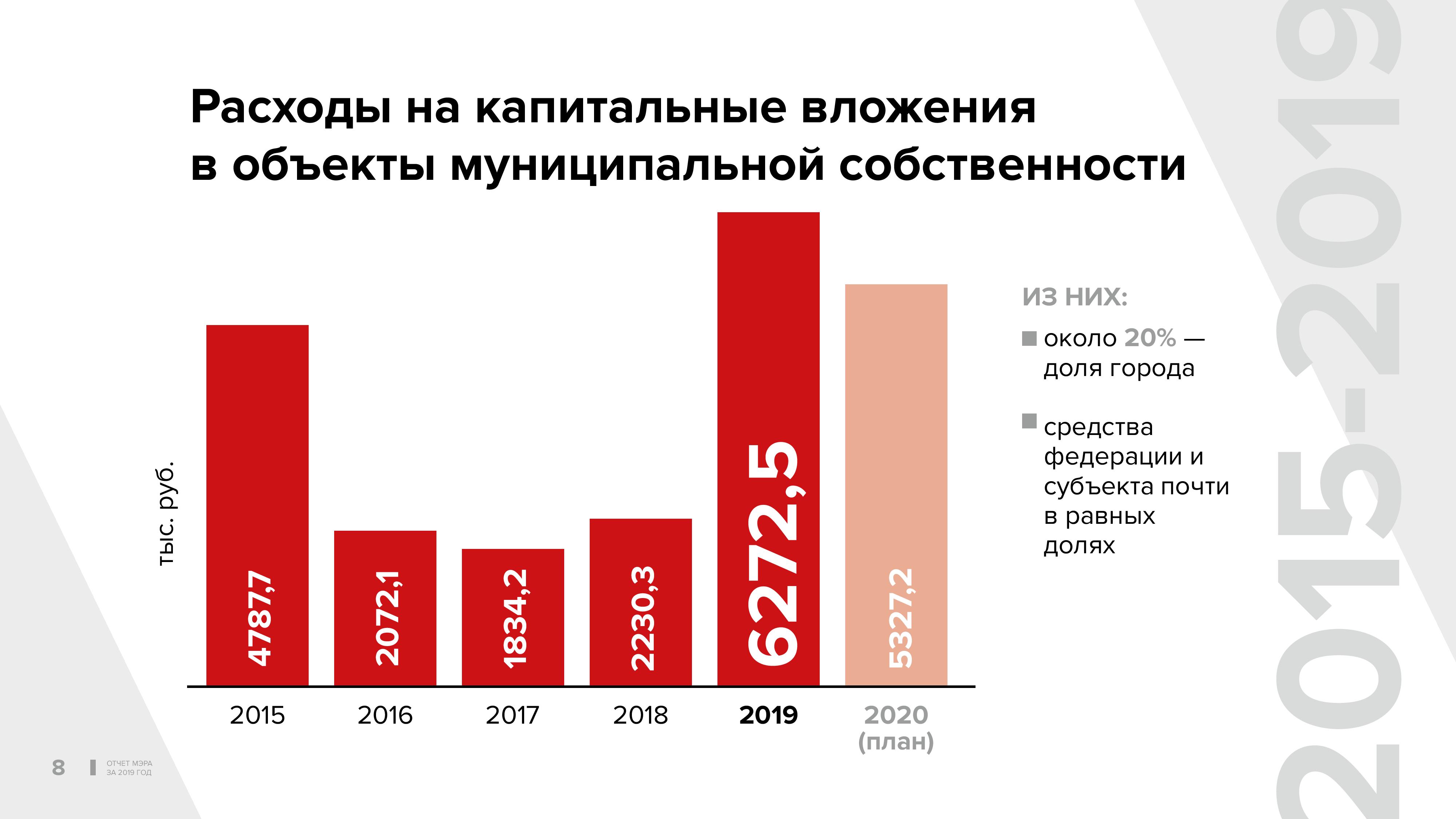Рекордным за четыре года стал рост объёма капитальных расходов, которые составили более 6 млрд, из них собственные средства города составили 1 млрд 200 млн рублей.
