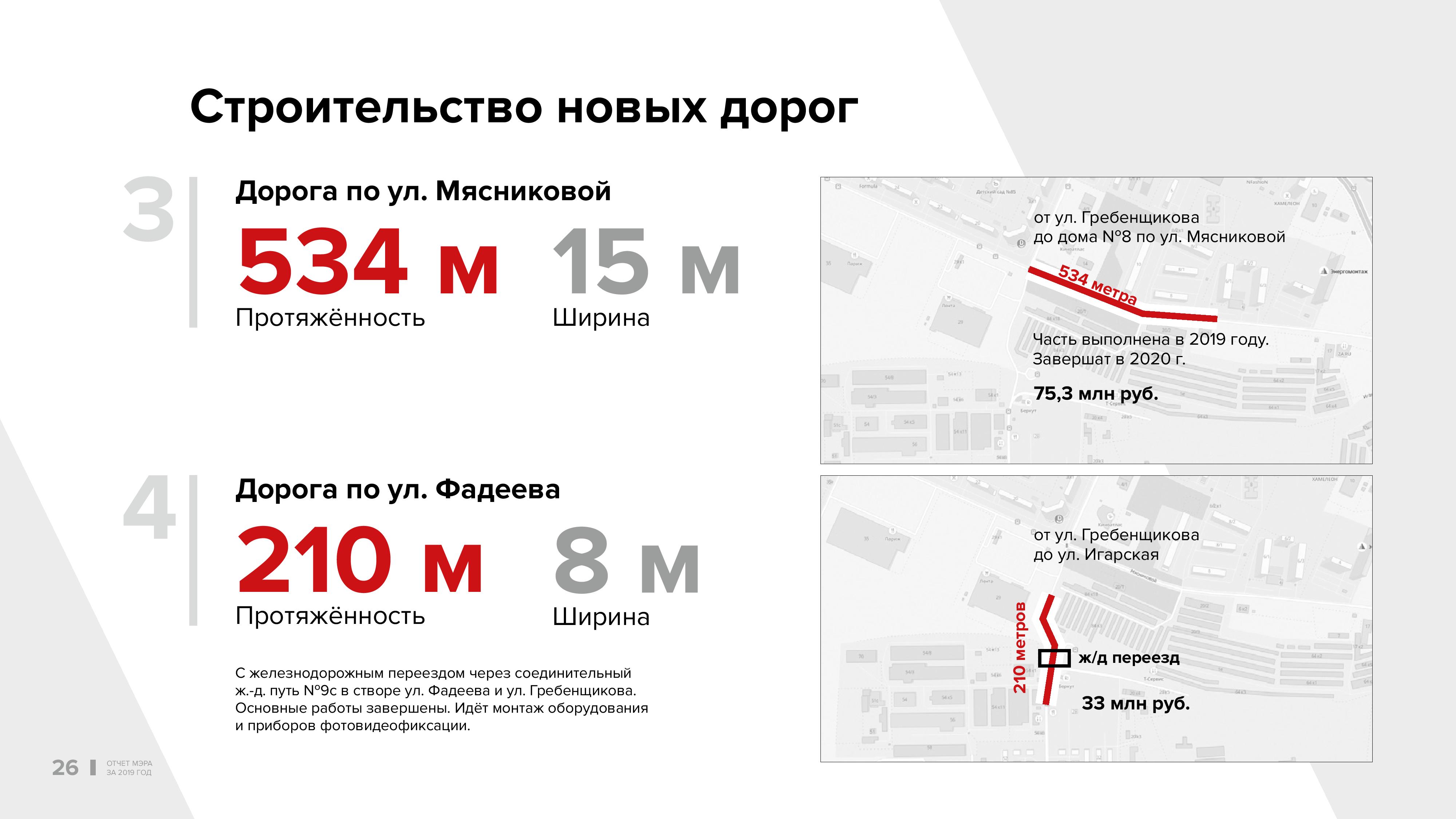 Сделан небольшой, но крайне важный участок на улице Мясниковой и в целом железнодорожный переезд. Мы планируем в первом квартале всё-таки запустить этот долгожданный переезд и тем самым решить вопрос транспортной доступности жителей 4-го, 5-го, 6-го микрорайонов. Также решается проблема транспортной доступности Южно-Чемского микрорайона, «Чистой Слободы».