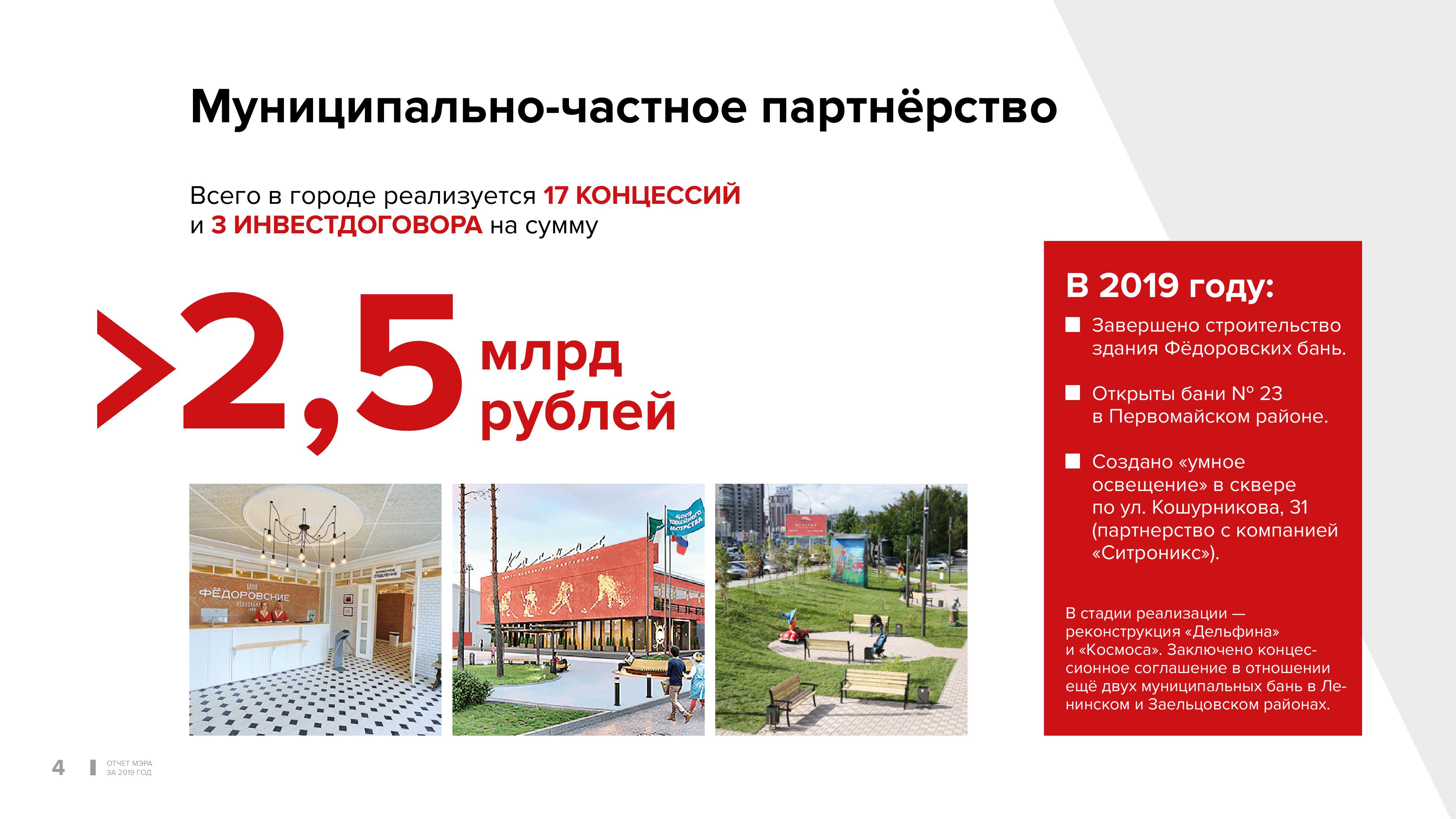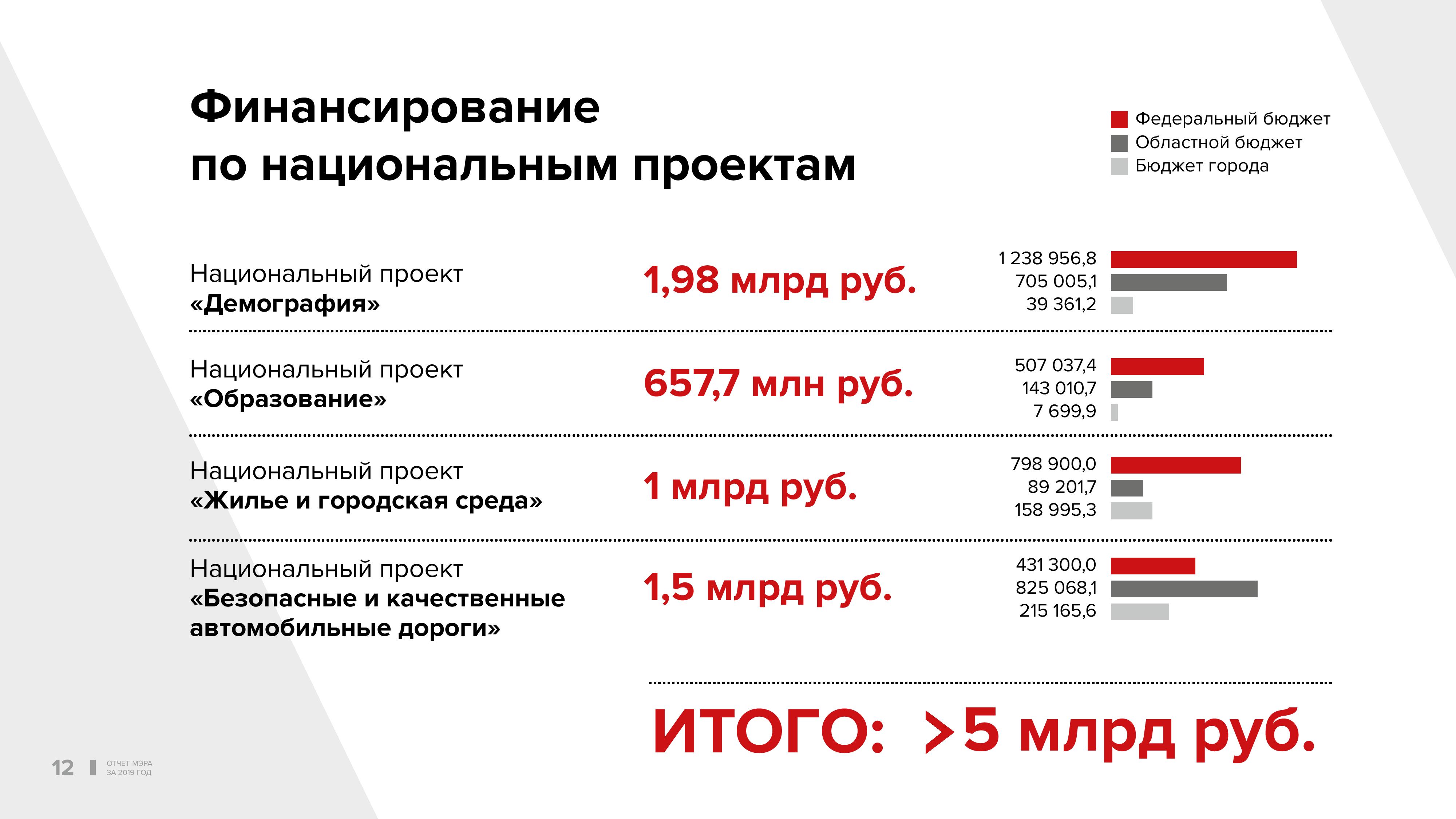 Сегодня на федеральном уровне звучат инициативы по увеличению финансирования муниципалитетов. Это значит, открываются новые возможности для повышения качества жизни, создания комфортной городской среды. В прошлом году на реализацию в Новосибирске четырех нацпроектов — «Образование», «Демография», «Жилье и городская среда», «Безопасные и качественные автомобильные дороги» — было привлечено более 5 млрд рублей из бюджетов трёх уровней.