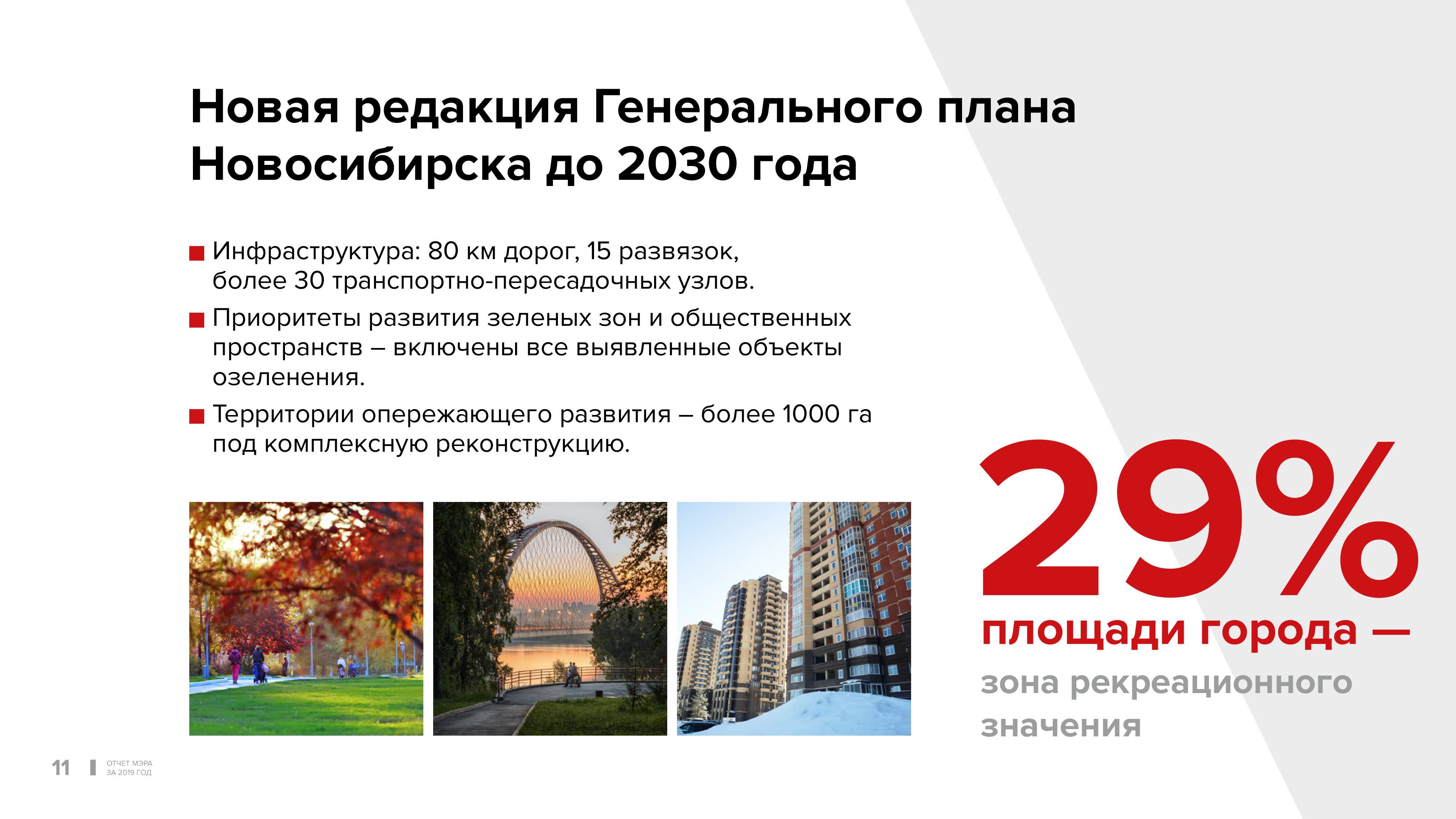 Всё это учтено в новой редакции генерального плана города, который сегодня принимается на период до 2030 года. Именно в 2019 году проделана огромная, кропотливая работа по его актуализации. И особенность этой работы заключается в том, что впервые, наверное, за всю нашу практику мы подробно, открыто обсуждаем с новосибирцами проект генерального плана на всех площадках, во всех районах. Состоялись общественные слушания.