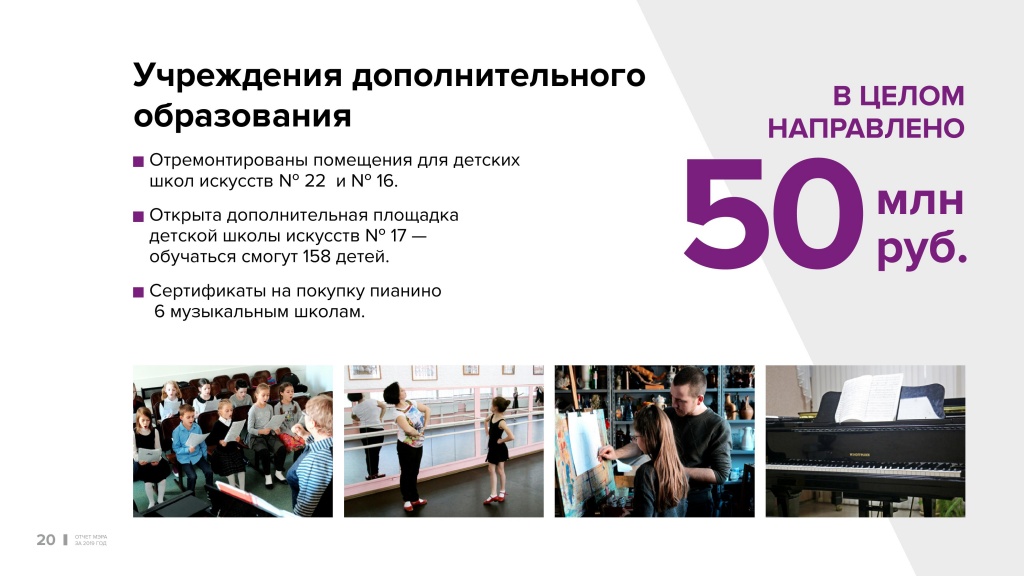 В послании главы государства говорится о развитии дополнительного образования. Важно, что проблема признана на федеральном уровне, и мы надеемся получить поддержку. Насколько это возможно, мы сегодня самостоятельно решаем вопросы оборудования и ремонта помещений. Несколько муниципальных школ искусств расширили свои площади, закуплены инструменты. В Академгородке наконец-то решена проблема передачи муниципалитету земли под строительство музыкальной школы.