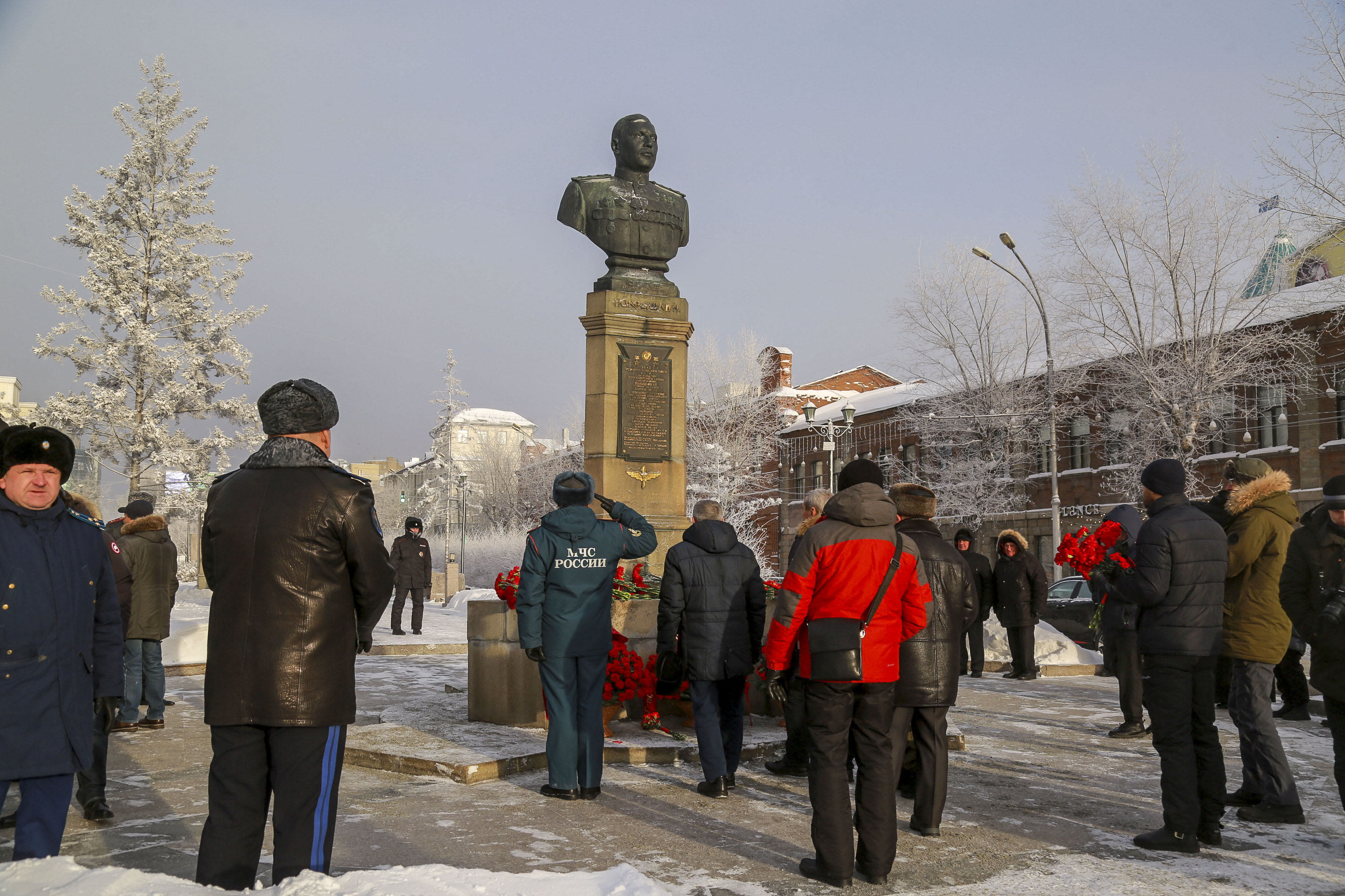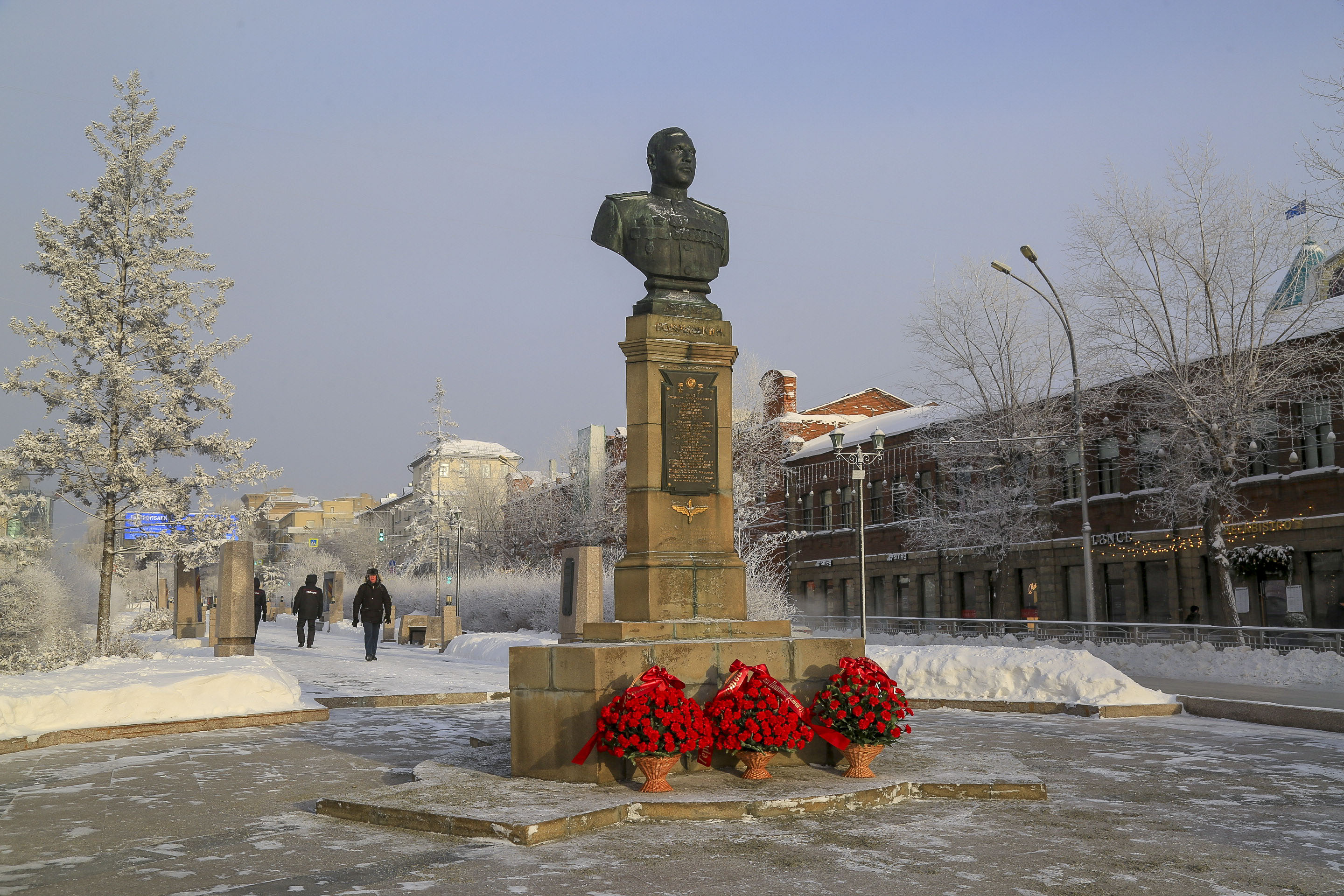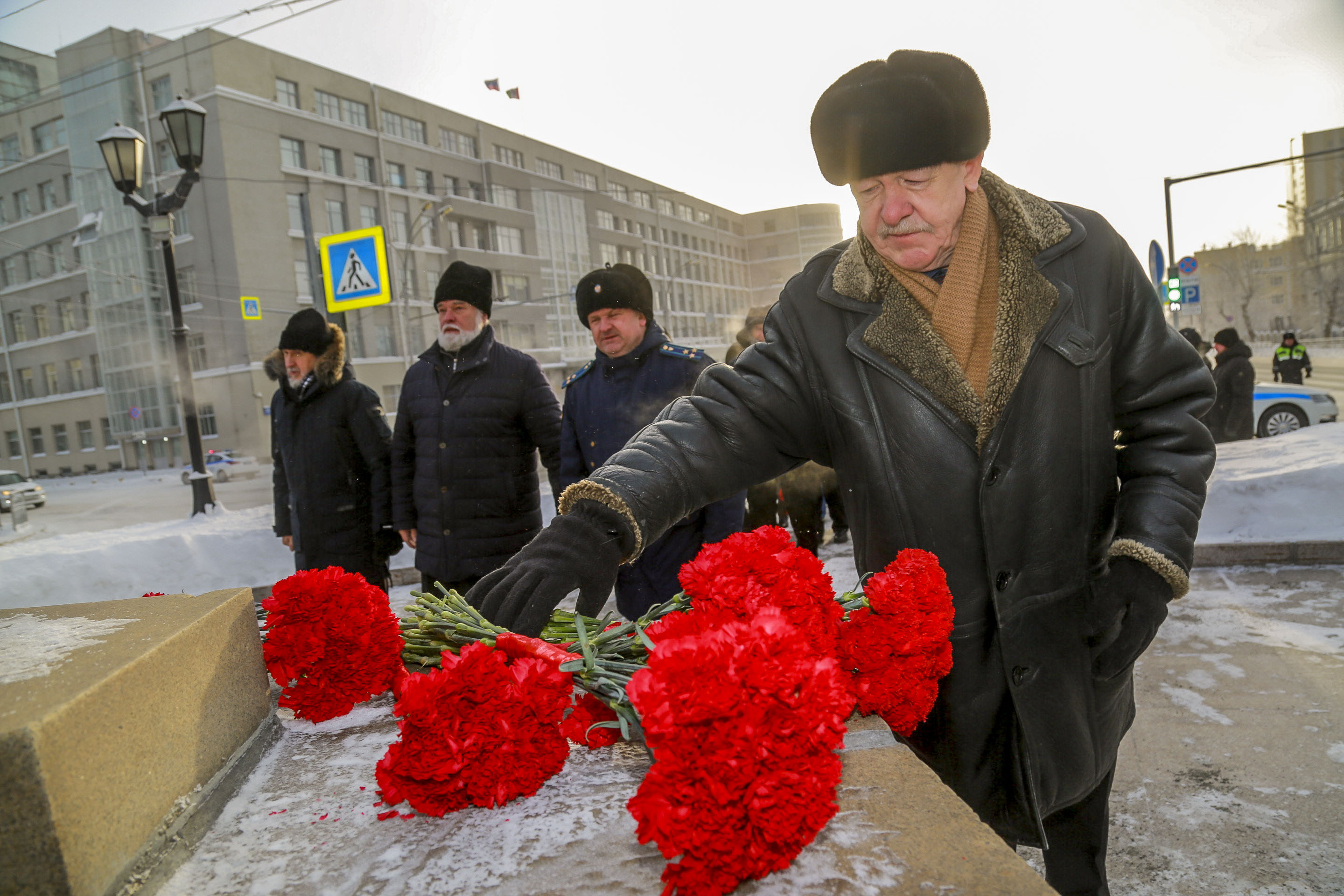 Мэр Локоть принёс цветы к бюсту Покрышкина в День героев Отечества