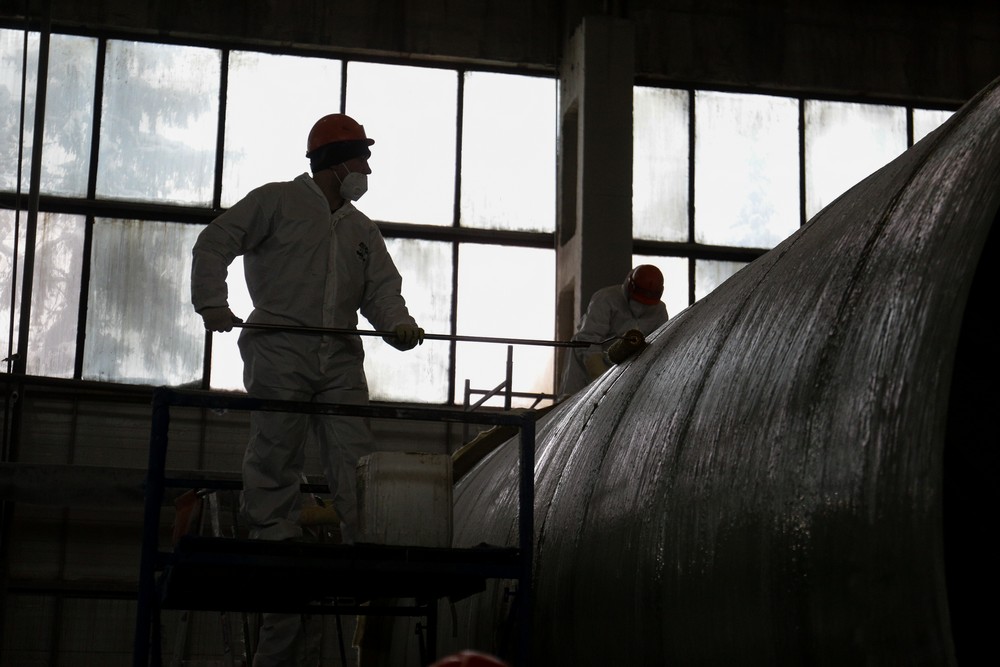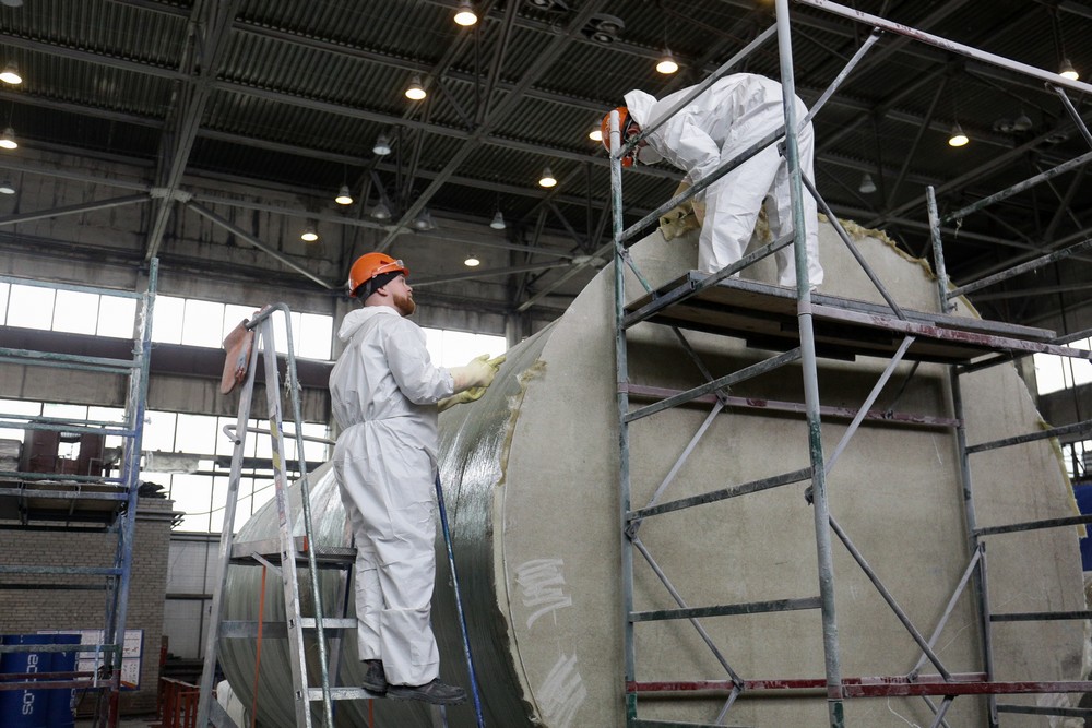 «Изготавливаем из стеклопластика, потому что он устойчив к внешним воздействиям, более долговечен, выдерживает большие нагрузки с разными средами. Изготавливаем ёмкости по очистке вод, неважно, сточные или для хранения ёмкости, и резервуары», — перечисляет слесарь-сборщик Александр Кузнецов.