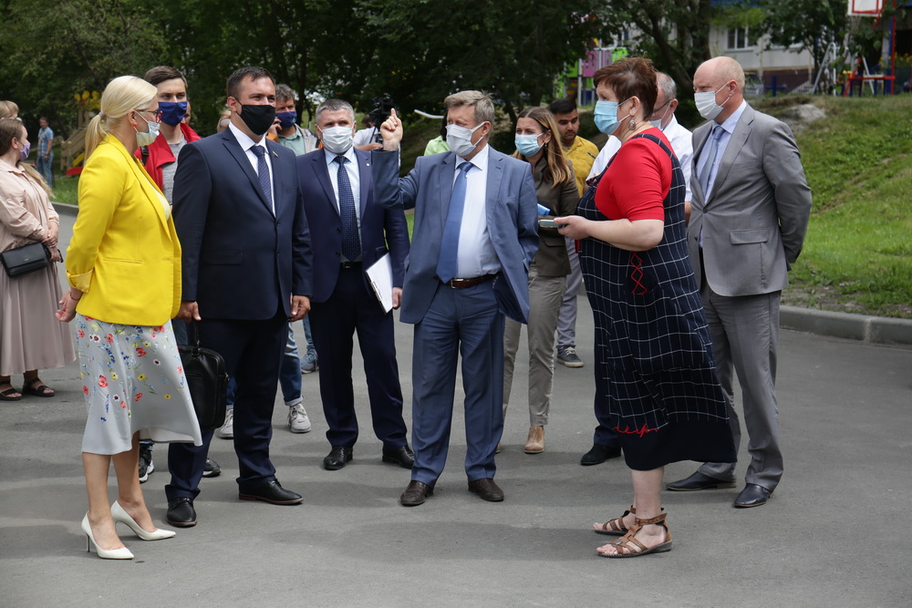Мэр Локоть проверил ремонт дворов со сложным рельефом