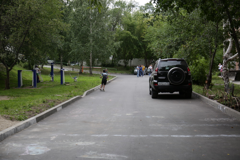 «На территории, где планировался сам внутриквартальный проезд и где планировались парковочные места — там асфальт уходит. То есть туда можно сыпать, а это всё уходит, уходит и уходит. Потому что там где-то вымывается. Но подрядчику удалось выполнить работу, в результате у нас двор оказался в очень хорошем состоянии», — объяснил депутат Совета депутатов Новосибирска Георгий Андреев.
