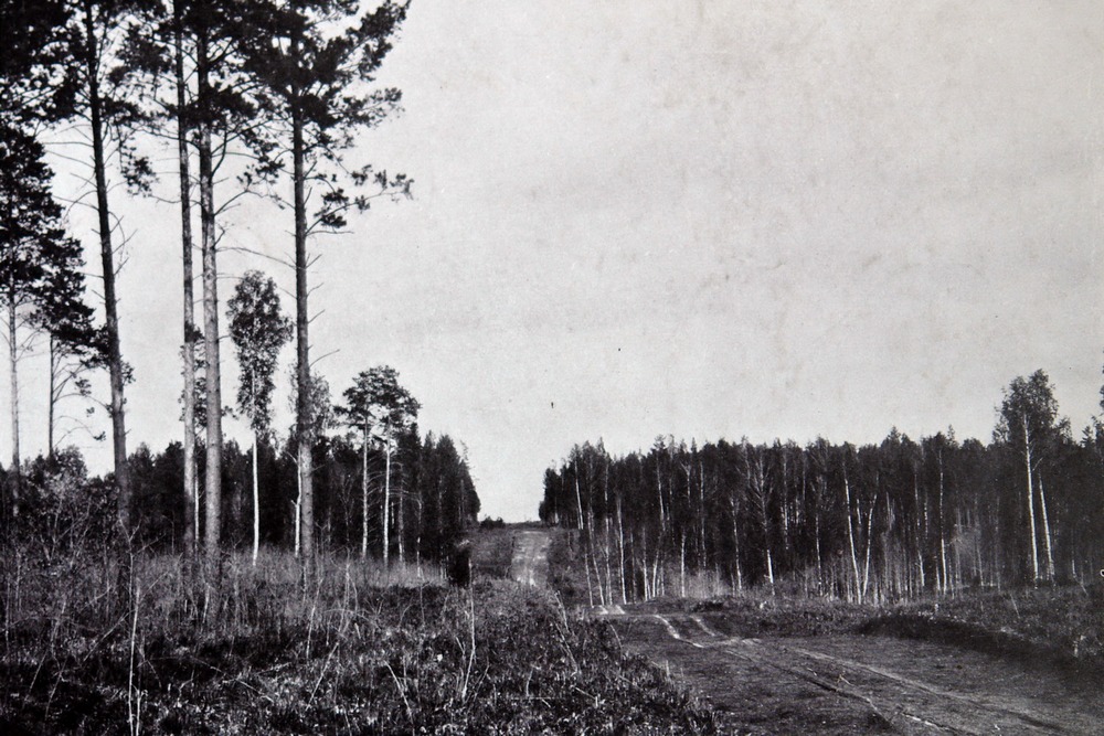 На знаменитой фотографии мы видим просеку, но каждому понятно, что для просеки эта дорога слишком широка и наезженна.