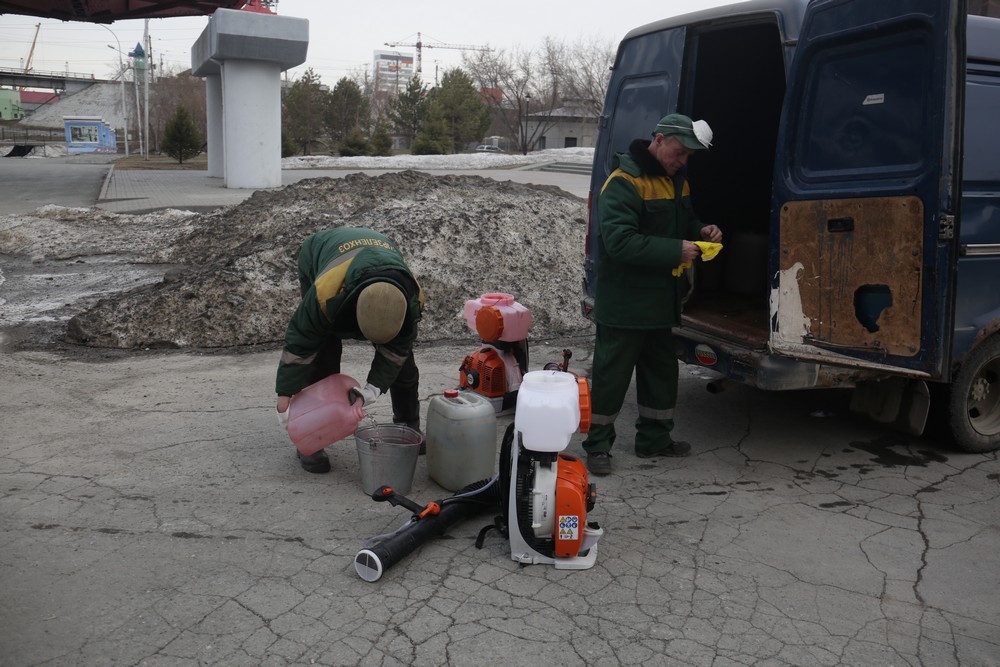 «Вещество, которым мы обрабатываем, — это „Септолит“. Это средство, рекомендованное управлением Роспотребнадзора. Оно безопасно для людей, для животных и для зеленых насаждений, которых на нашей территории достаточно много», — поясняет начальник управления благоустройства общественных пространств мэрии Новосибирска Вадим Полещук.
