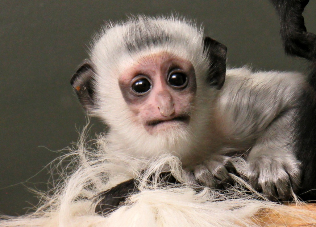 Милая белоснежная обезьянка родилась в Новосибирском зоопарке