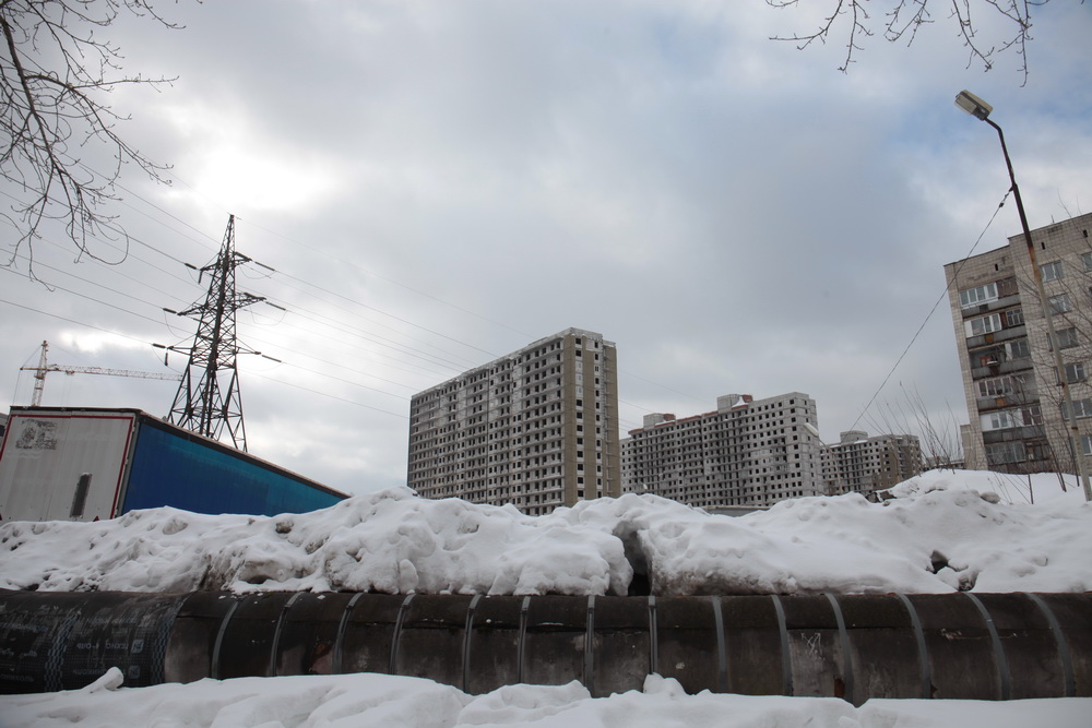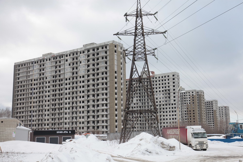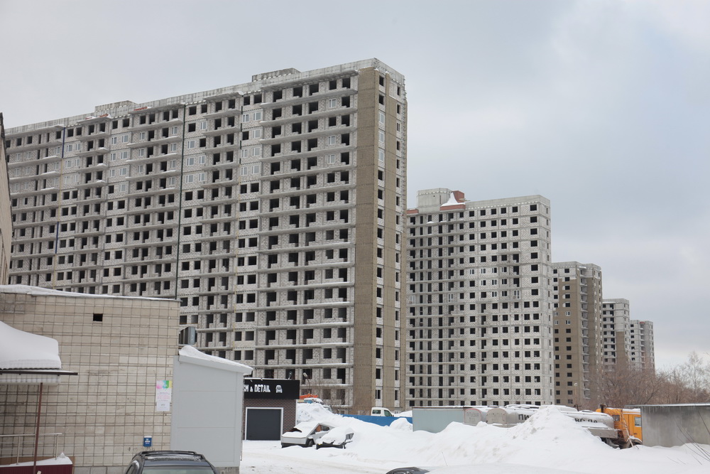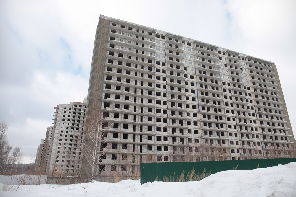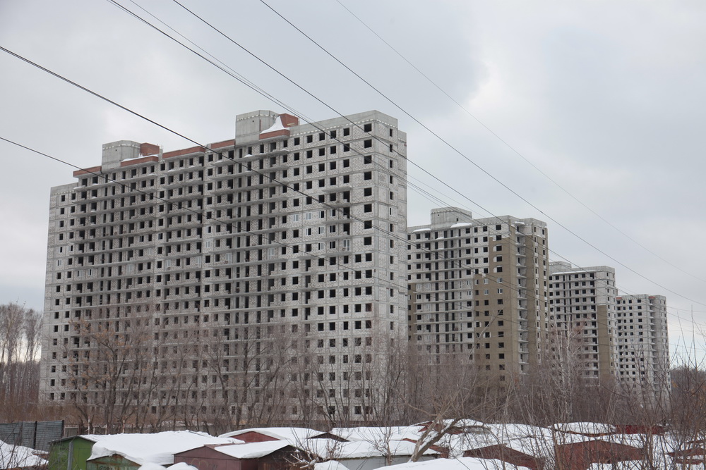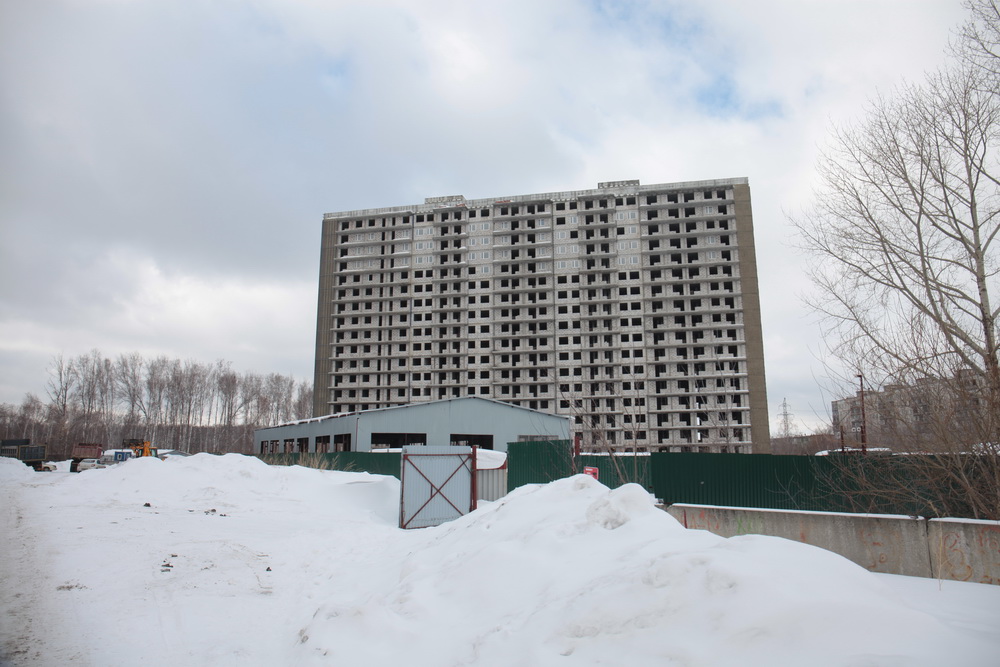 Уже семь лет стоит без движения стройплощадка в границах улиц Овчукова и Объединения в Калининском районе. Даже с улицы Богдана Хмельницкого хорошо виден ряд из пяти недостроенных 18-этажек без окон и дверей. Возводила жилой комплекс компания «Оборонстрой», входившая в структуры минобороны. В декабре 2017 года она ликвидирована.