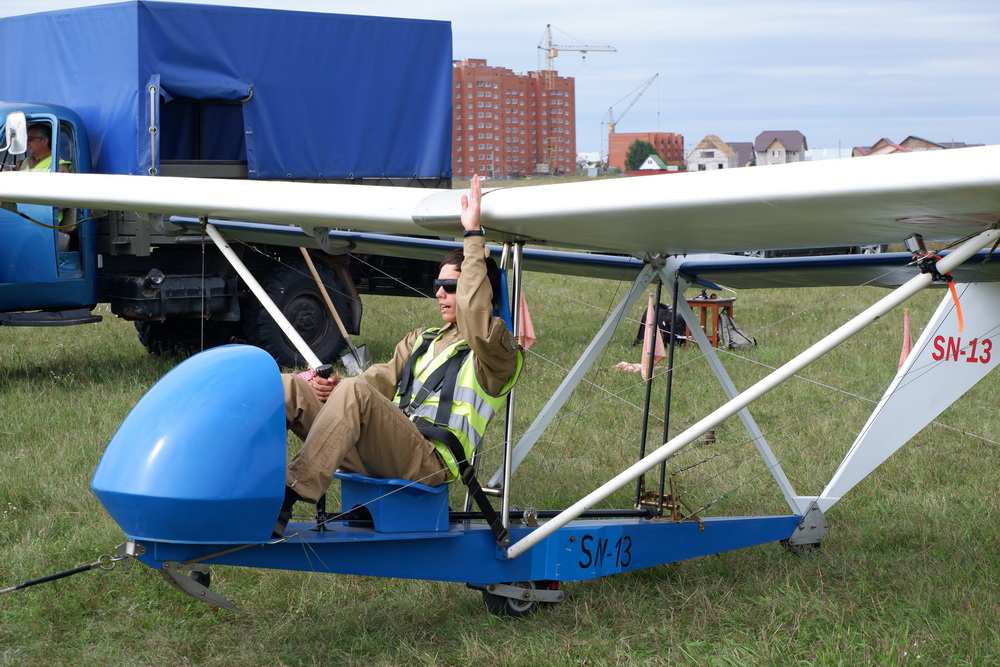 Первые «пробежки» и полёты — уже после зимних каникул. Зимой легче управлять планером: он разгоняется по снегу на широкой лыже, а не на маленьком колесе — так легче удержать аппарат в прямом положении.