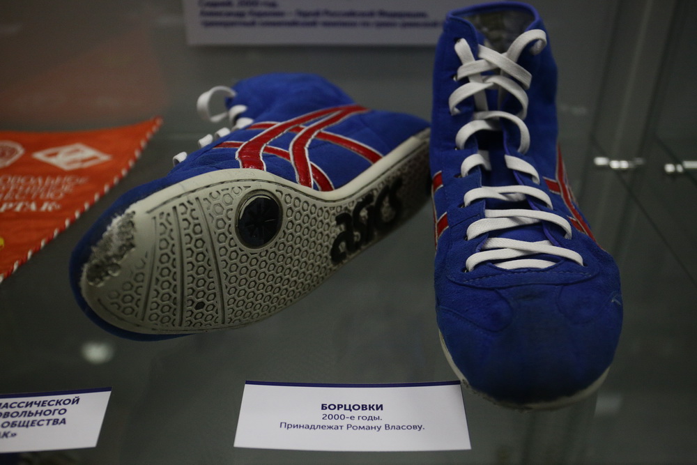 В Новосибирске открылась выставка «По следам Олимпиады. Спортивная обувь». Как вы уже догадались, на музейных полках в качестве экспонатов — обувь прославленных спортсменов. Тут можно увидеть шиповки двукратного олимпийского чемпиона по лёгкой атлетике Виктора Маркина, штангетки 22-кратного чемпиона мира по пауэрлифтингу Сергея Федосиенко, моноласту 21-кратного чемпиона мира по плаванию в ластах Сергея Ахапова, кроссовки баскетболиста и самого высокого человека страны по версии Книги рекордов Гиннесса Павла Подкользина, а также борцовки трёхкратного олимпийского чемпиона по греко-римской борьбе Александра Карелина.