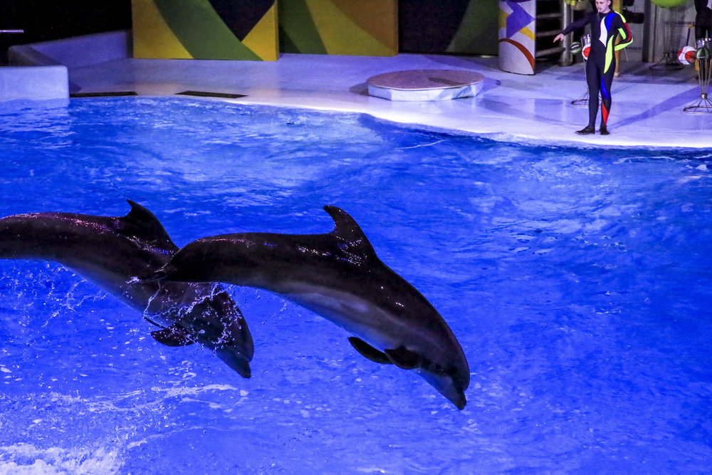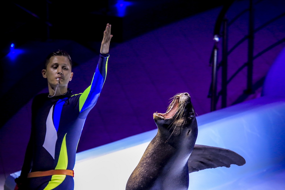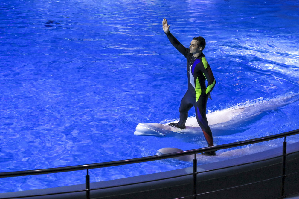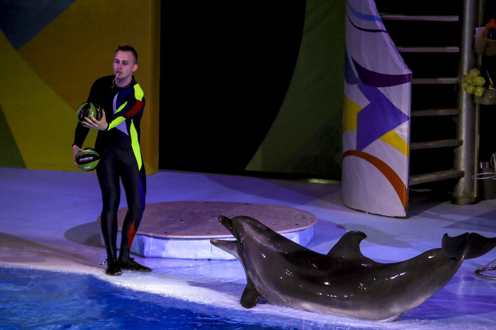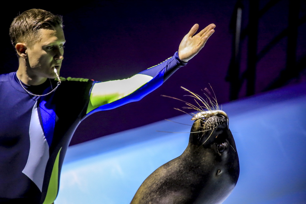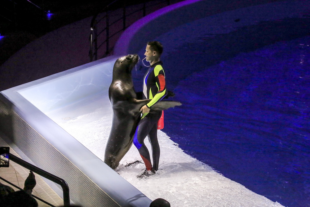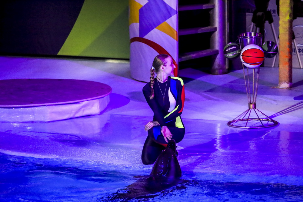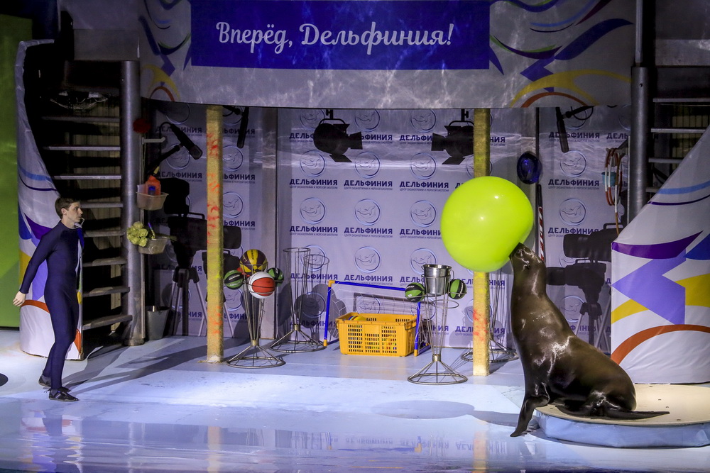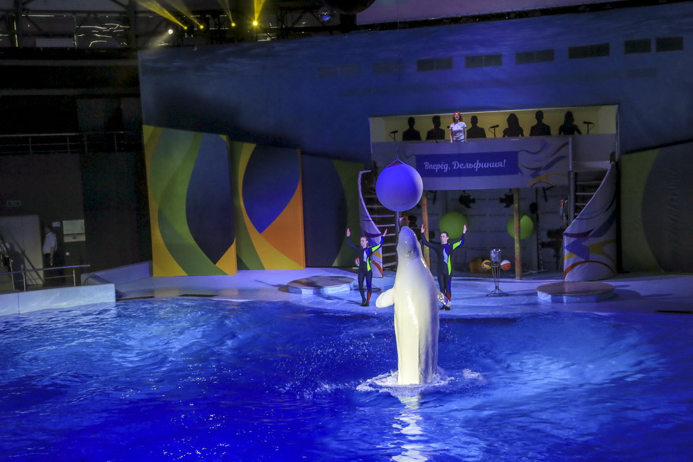 Морж Тика, морские львы, дельфины и белые полярные киты — в программе участвует вся труппа. К шоу готовились несколько месяцев, тренировались каждый день.