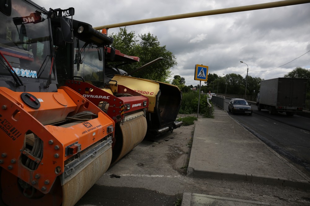 Асфальт укладывают ночью, чтобы не мешать дорожному движению днём. Здесь интенсивный трафик. Этот мост — один из немногих путей в село Новолуговое. Важно было не создавать пробку в этом месте.