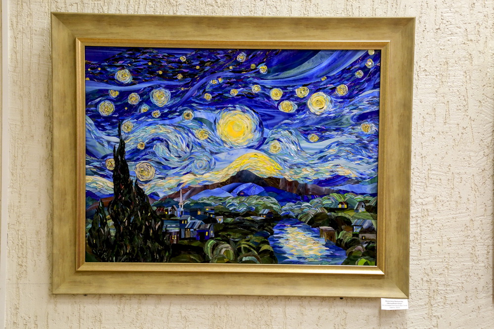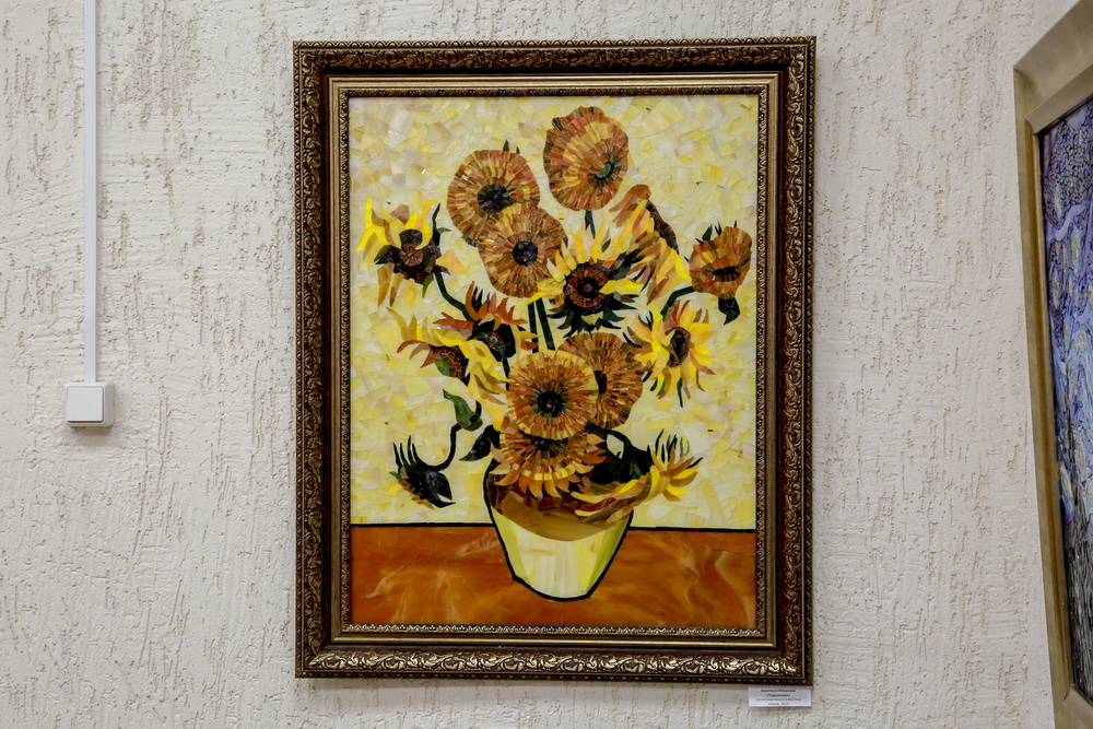 «Чтобы представить 50-70 работ, нужно, чтобы большое количество учеников трудилось. В этом году дата очень важная — 170 лет со дня рождения Винсента Ван Гога. Это человек-феномен с точки зрения художественного творчества, мы собрали более 20 мозаик по работам Ван Гога, и эти работы сегодня можно увидеть», — отмечает основатель художественной мастерской «Колибри» Валентина Вьюшкова.