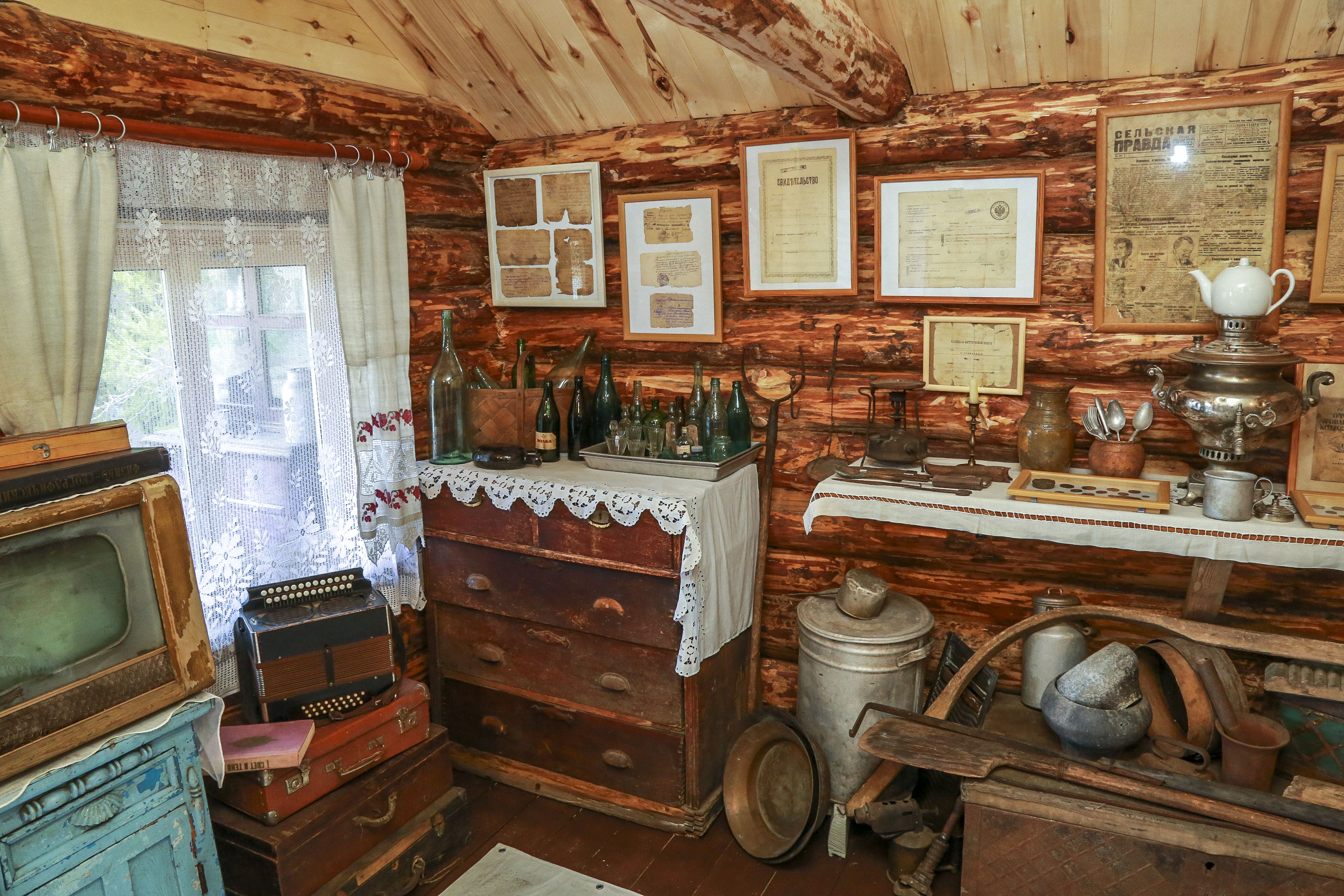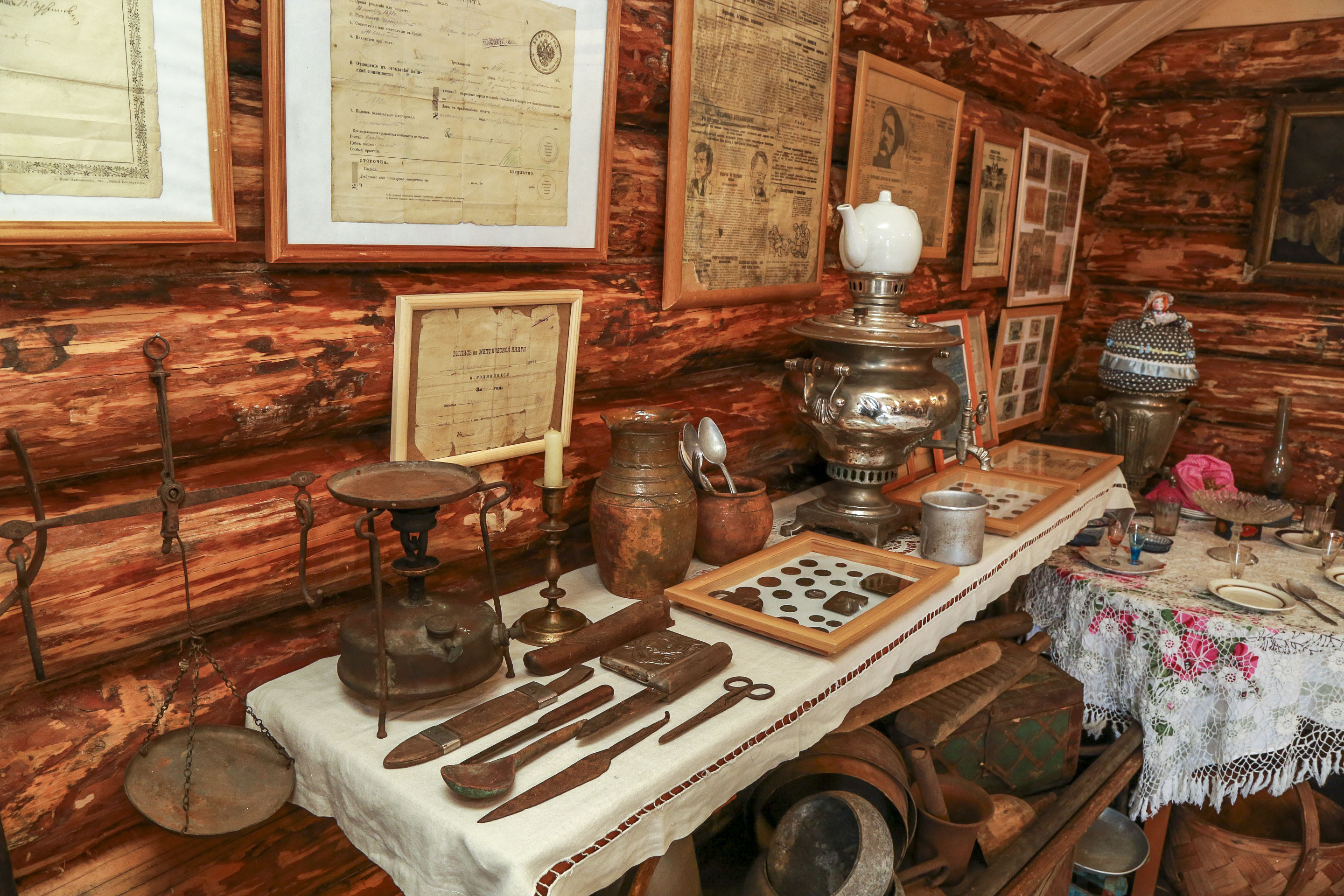 Местные жители, разбирая чердаки и сундуки в своих старых домах, тоже стали приносить найденные вещицы. Так набралась целая коллекция — более сотни экспонатов, самые старые относятся к концу XVIII века.