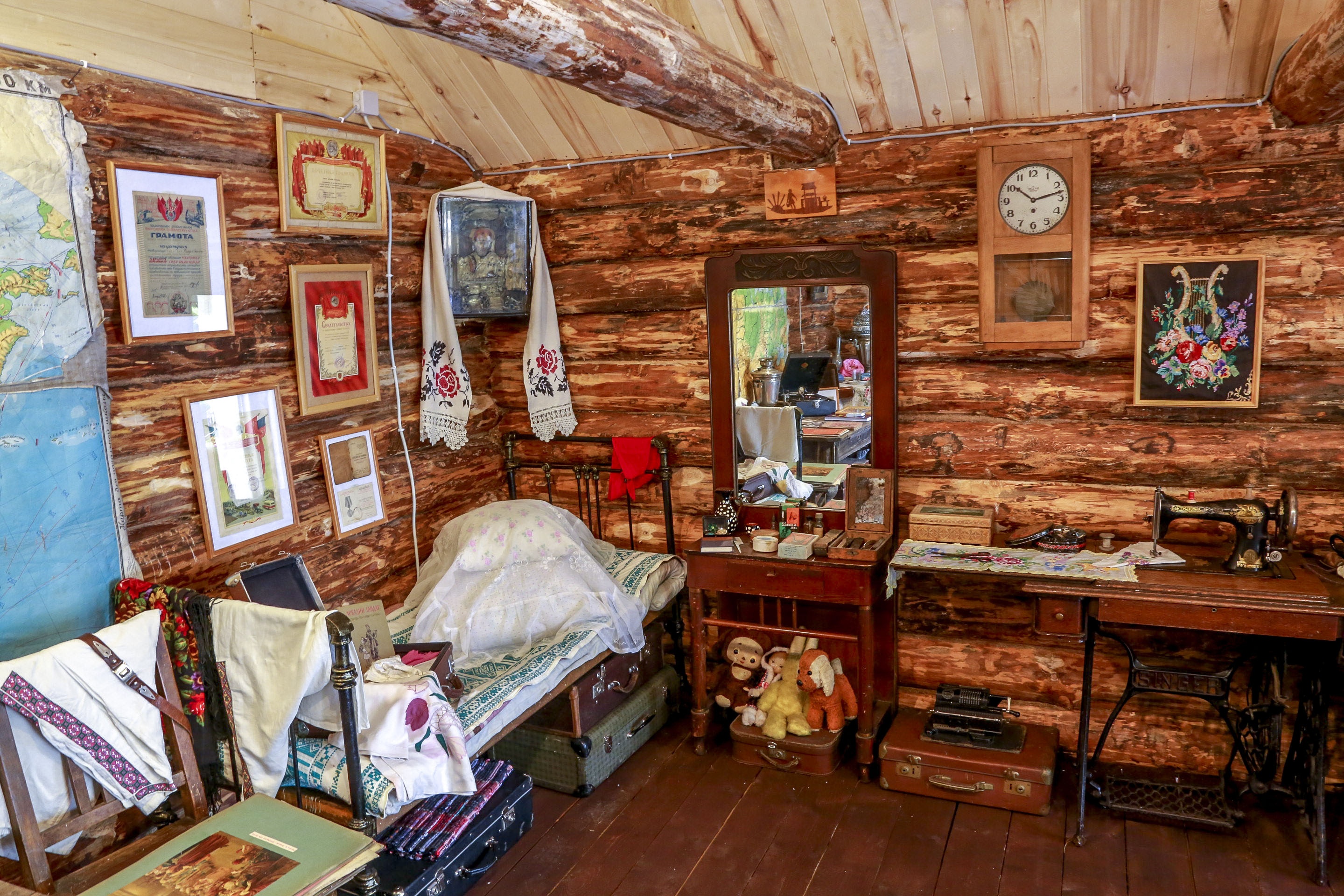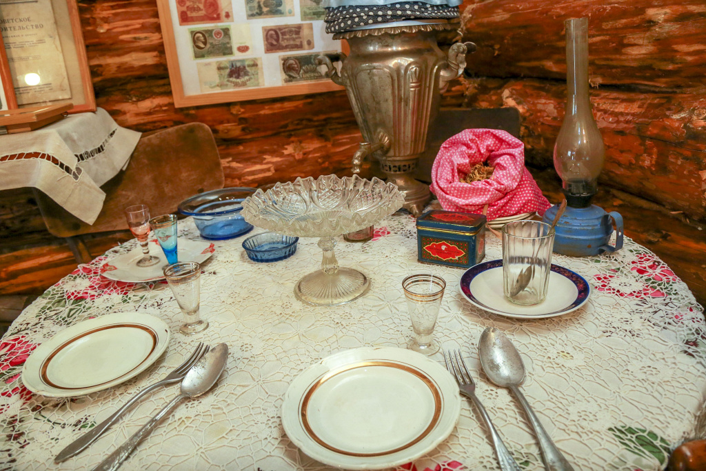 В избушке сразу с порога проникаешься духом прошлого. Пахнет дымом от самовара и кожаным стременем. На столе уже всё накрыто — не хватает кастрюли с борщом.
