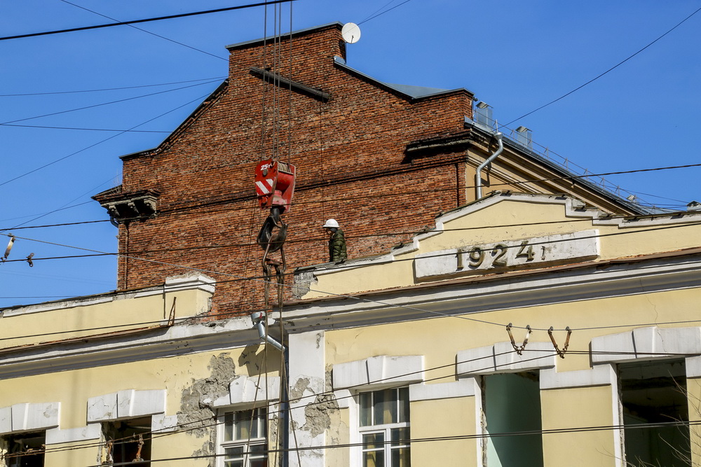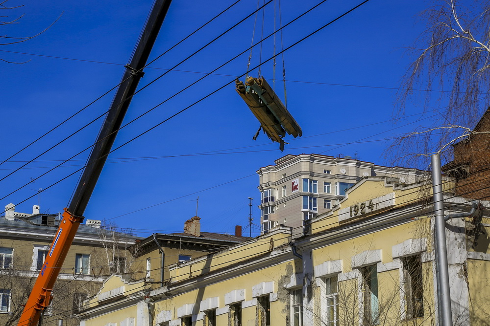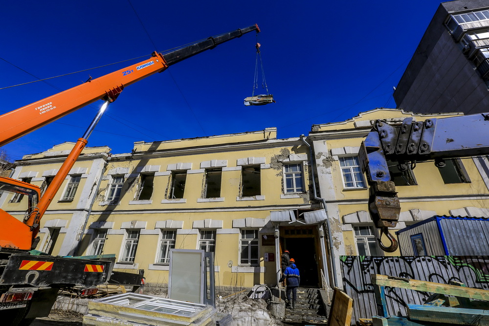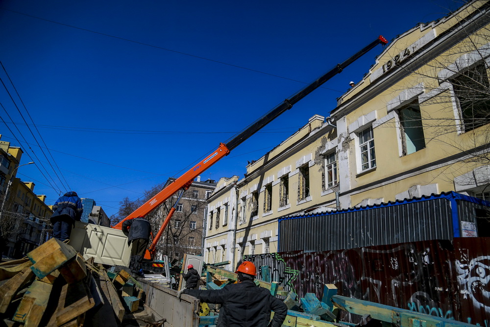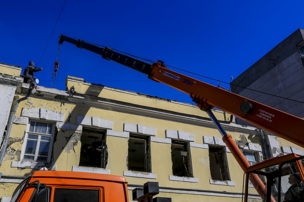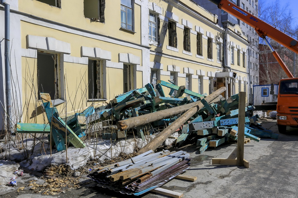 Сейчас рабочие полностью разобрали крышу, демонтируют окна и двери.