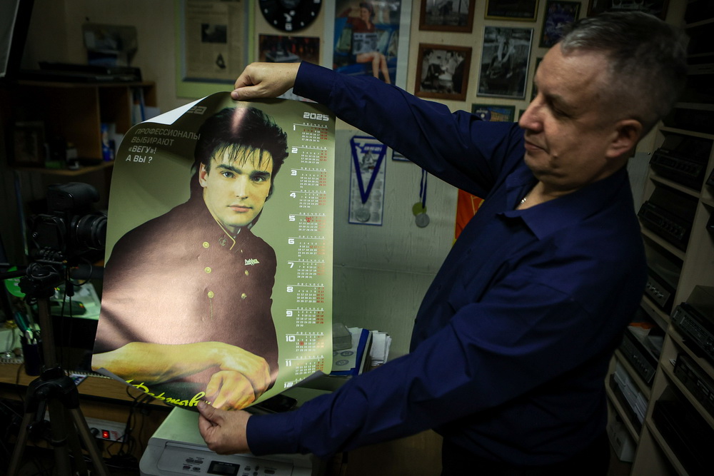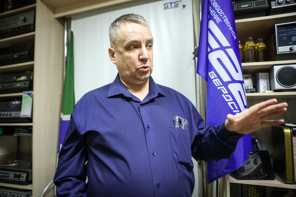 Советскую технику он разместил в своей небольшой фотомастерской. На входе посетителей встречают постеры и календари с символикой легендарного бердского радиозавода. Дверью не ошибёшься — здесь всё время играет музыка.