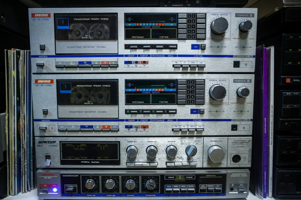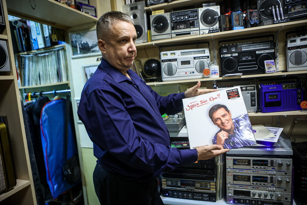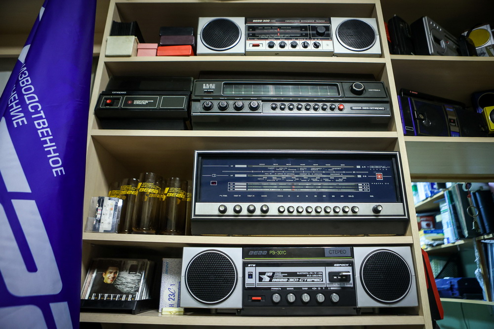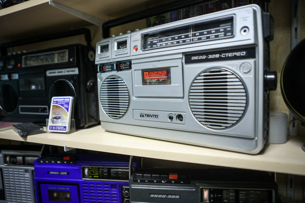 «От времени любая аппаратура приходит в негодность. Если иголка у проигрывателя будет долго стоять без работы, она задубеет, и звук будет как из бочки. Был случай, когда мне принесли новый „веговский“ магнитофон в заводской упаковке. Лежал много лет ненужный в гараже. Я вскрыл коробку, а там всё новенькое, в пакетиках. В комплекте шли разноцветные наушники. Я обрадовался — давно хотел себе такие в коллекцию. Когда вскрыл их — через пять минут после соприкосновения с кислородом они рассыпались в труху», — отмечает владелец импровизированного музея.