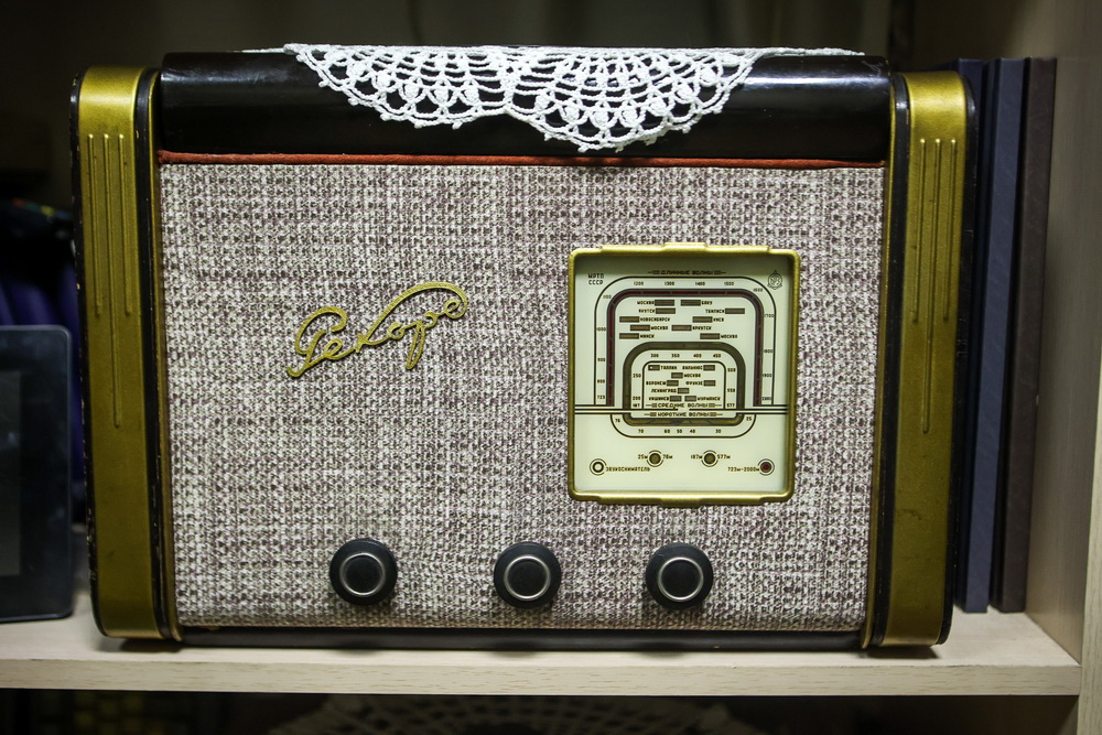 Одна из них — радиола «Рекорд» 1953 года выпуска. Эти устройства были особенной частью советского быта. Они занимали почётное место в домах и служили источником музыки, новостей и развлечений. Модели были оснащены проигрывателем для виниловых дисков, а поздней ночью любители могли настроиться на западные радиостанции. Сейчас уже нет таких станций, которые принимал бы этот прибор. Но пластинки послушать можно.