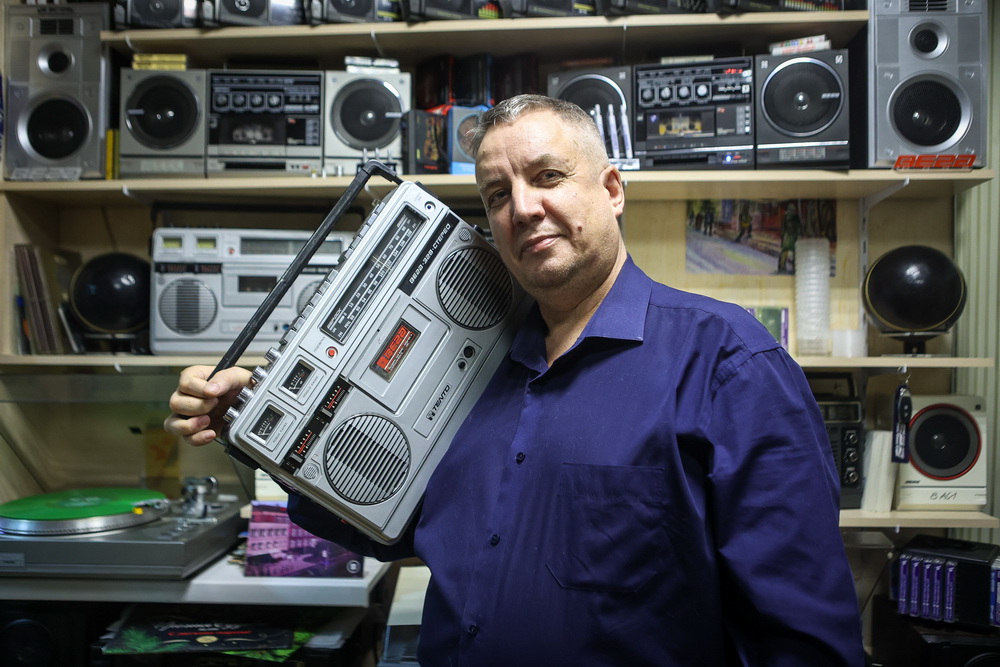 «Это была первая стереофония в Советском Союзе, и я очень гордился, что он у меня есть. На улицу с собой не брал, хотя тогда так делать было модно. Для ребят конца „восьмидесятых“ – начала „девяностых“, когда нужно было за себя постоять, магнитофон был хорошим ударным инструментом. Не зря их носили на плече на всеобщее обозрение. На человека с магнитофоном нападать было чревато», — шутливо вспоминает коллекционер.