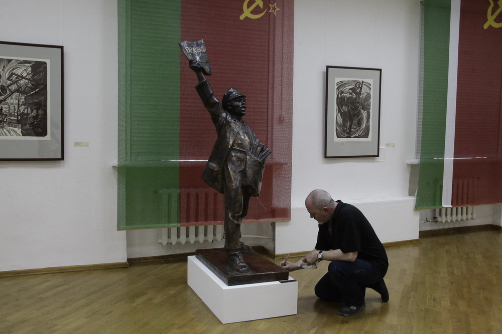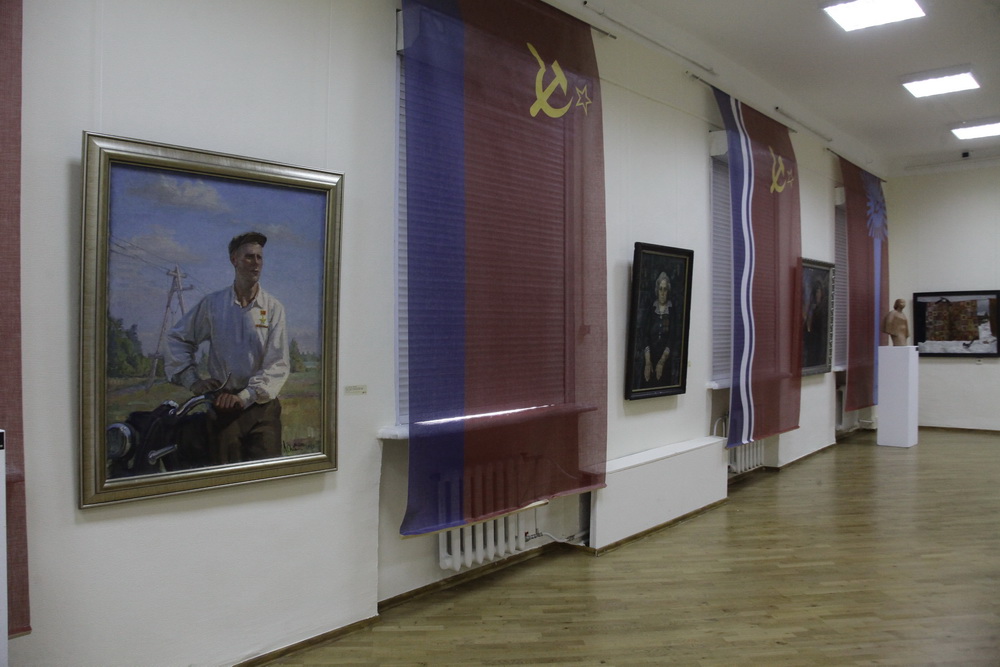 «Мы хотели делать рабочую выставку, показать, что у нас есть на сегодняшний день. Необязательно это политика, необязательно это воспоминания в чистом виде о Советском Союзе. Просто люди, которые родились тогда, сейчас работают так», — рассказал член Союза художников России Сергей Мосиенко.