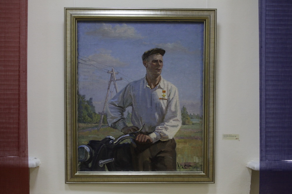 «Это её автопортрет. Она была такая красивая! Она и сейчас красивая, но тогда, в молодости, она была — сами видите — девушка очень симпатичная, очень эффектная. Ну она была у нас всегда общественница, так и автопортрет называется — „Комсорг“», — рассказала Татьяна Громыкина.