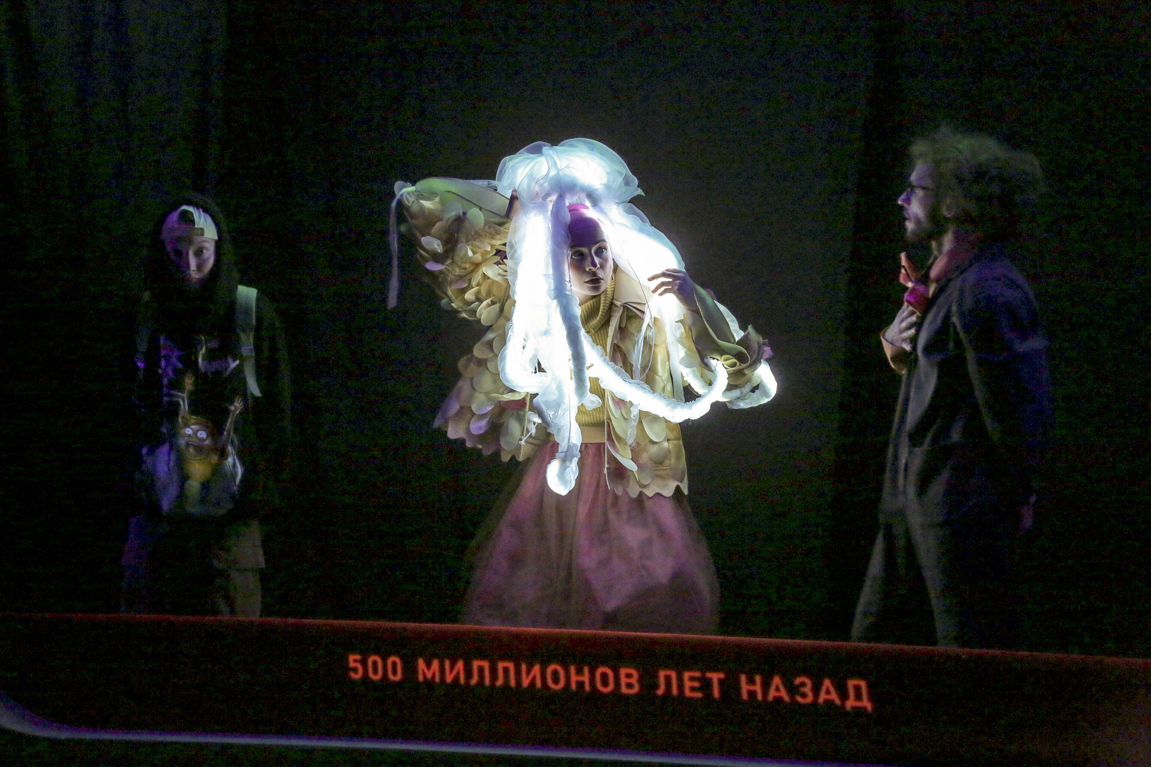 Вместе с артистами зрители изучают доисторических рыб и млекопитающих и узнают, как сформировались разные отделы нервной системы человека.