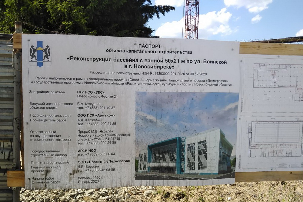С улицы Воинской в Новосибирске исчезло авариное здание бассейна СКА. Кирпичный корпус разрушили, а на его месте вырыли огромный котлован. Сейчас подрядчики обустраивают в нём свайное поле. На стройке установили башенный кран, но стройматериалы пока не завезли. Разрешение на реконструкцию аварийного бассейна областное Управление капитального строительства получило в декабре 2020 года. В начале этого года рабочие приступили к разбору здания. Активная фаза строительства начнётся сразу, как только завершится забивка свай.