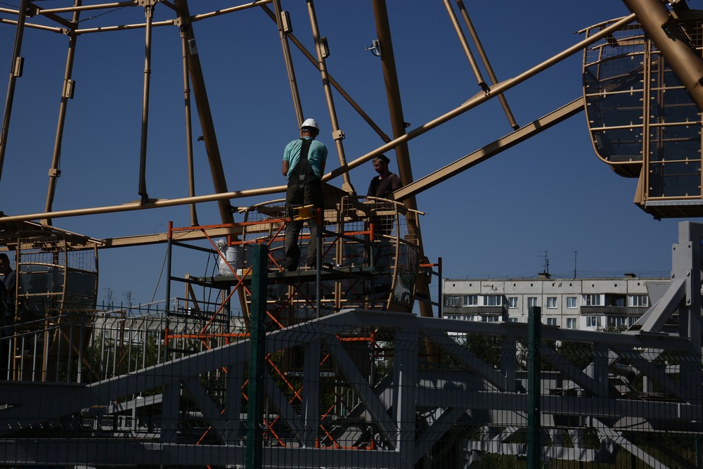 «Колесо обозрения оборудовано также системой дистанционного управления, которое располагается в отдельном шкафу. Она позволяет отслеживать состояние колеса, совершать его пуск и аварийную остановку. Помимо этого, колесо обозрения снабжено системами удалённого видеонаблюдения, располагаются камеры и 4G-модем с усиленной антенной», — перечисляет владелец аттракциона Павел Казак.