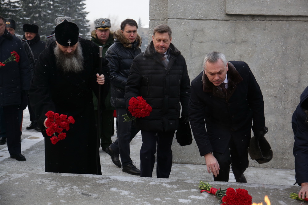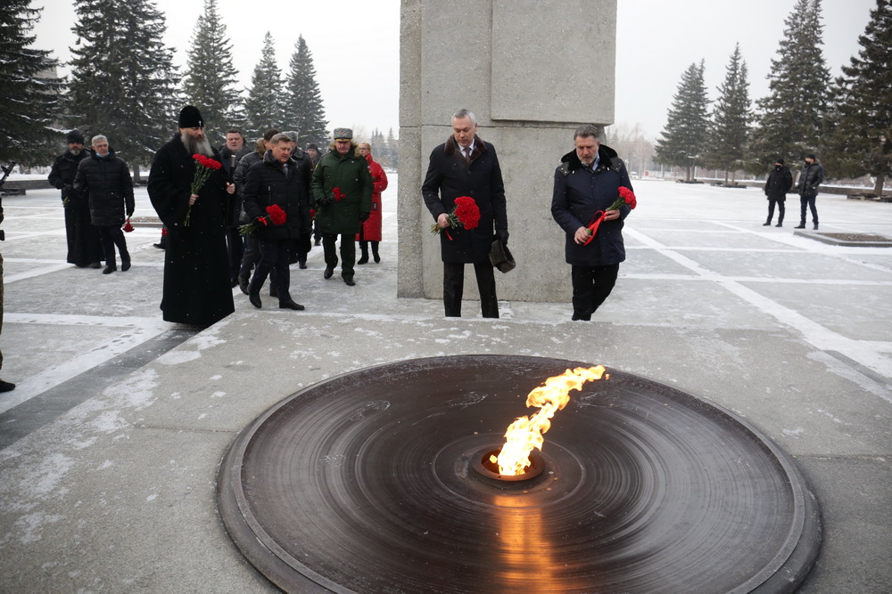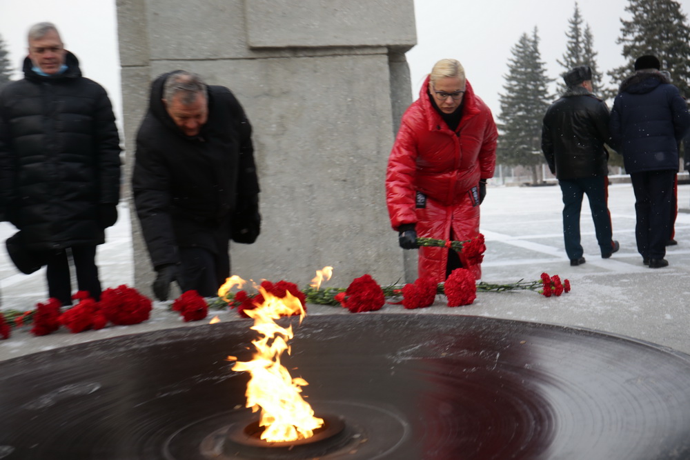 На Монументе Славы сегодня десятки тех, кто пришёл вспомнить погибших. В День Неизвестного Солдата новосибирцы принесли цветы к Вечному огню.