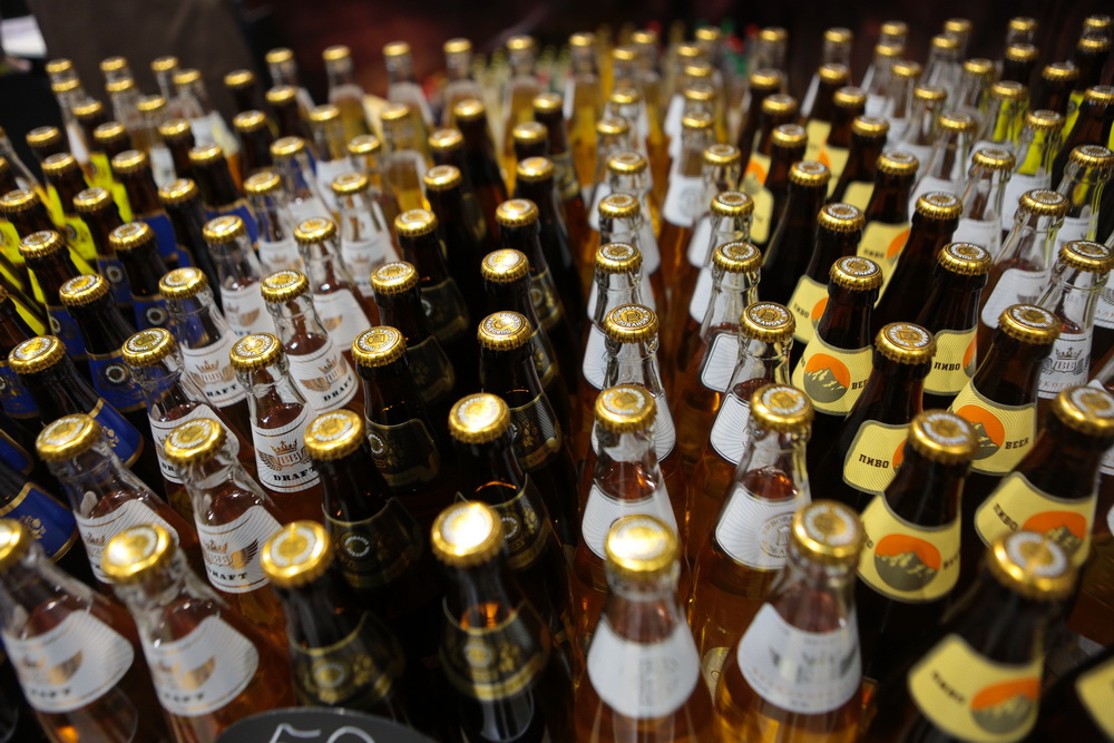 Белки отделить от желтков, желтки растереть с сахаром. Добавить в них сметану и половину пива, перемешать. Всыпать муку и постепенно вливать оставшуюся половину пива. Белки взбить в крепкую пену с солью. Добавить белковую массу в тесто, смешивать до однородности. Жарить на раскалённой сковороде, добавляя масло по необходимости. Подавать со сметаной, вареньем, икрой и другими добавками.